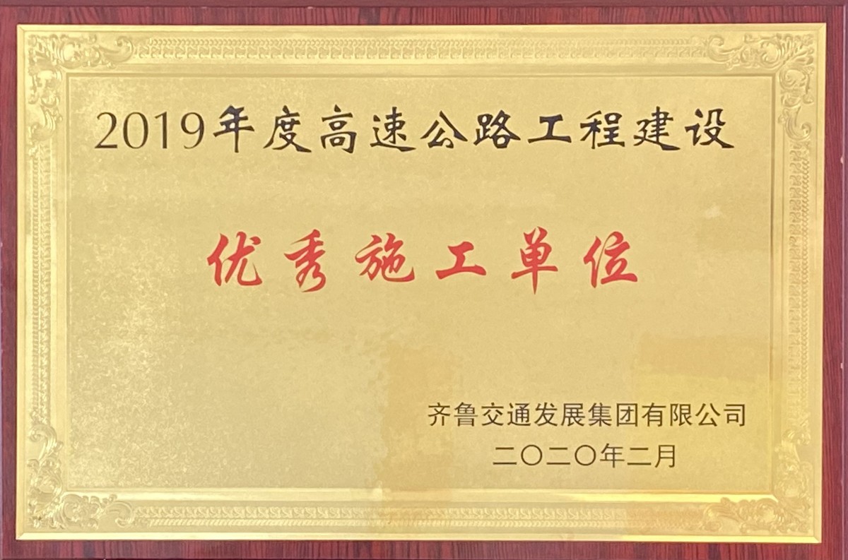 - 2019年度高速公路工程建設優(yōu)秀施工單位