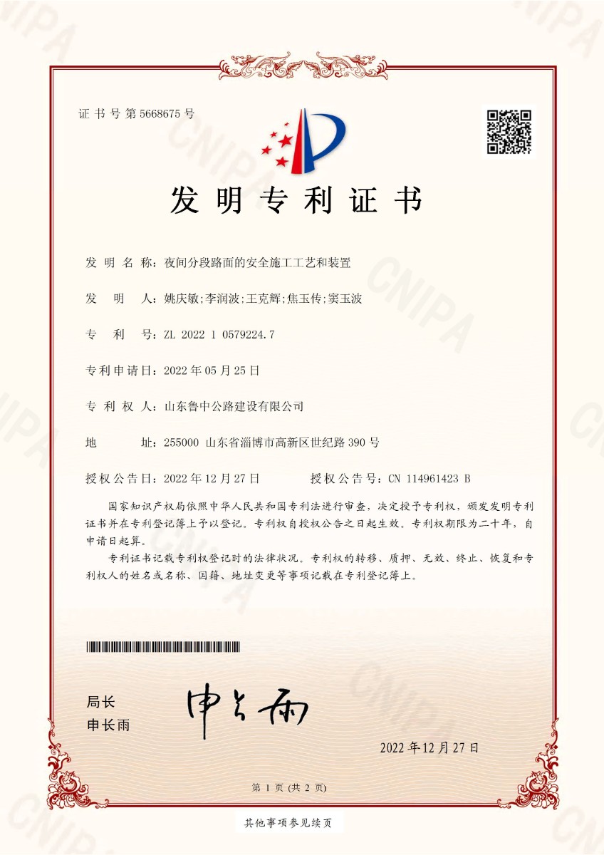- 夜間分段路面的安全施工工藝和裝置