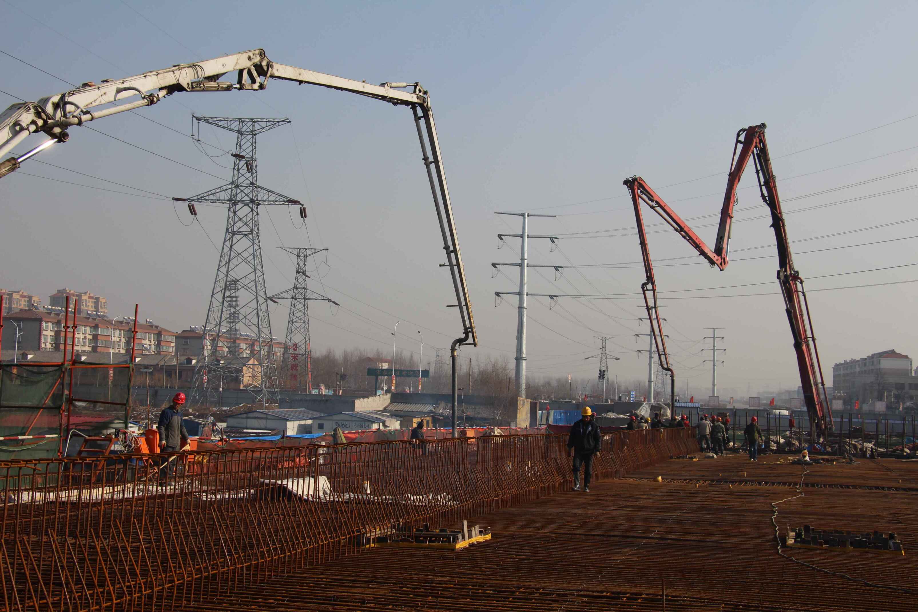在歷經(jīng)了持續(xù)的重度霧霾和雨雪天氣之后,終于迎來(lái)了冬日里少有的一個(gè)艷陽(yáng)天。12月29日,11時(shí)18分,伴隨著鞭炮齊鳴聲中第一罐混凝土注入泵車,馬南路孝婦河橋首次現(xiàn)澆箱梁拉開(kāi)了序幕。