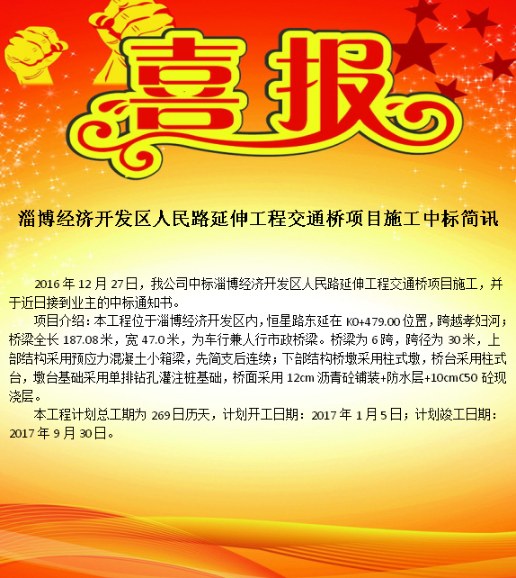 公司中標淄博經濟開發(fā)區(qū)人民路延伸工程交通橋項目施工
