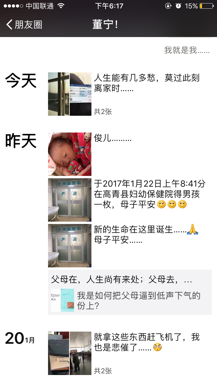 這張圖片是財(cái)務(wù)部駐貴州項(xiàng)目部會(huì)計(jì)董寧的朋友圈截圖。2017年1月22日農(nóng)歷臘月二十五,董寧的第二個(gè)小寶貝誕生,作為人夫、人父我想那一刻的喜悅已經(jīng)難以用語(yǔ)言來(lái)形容。但財(cái)務(wù)工作越到年底越緊亦是必然,所以短暫的陪伴過(guò)后董寧便又搭乘了前往貴州的航班,我們知道是財(cái)務(wù)人員的責(zé)任感讓他做出了這個(gè)選擇。“人生能有幾多愁,莫過(guò)此刻離家時(shí)”......縱然心中有萬(wàn)般不舍,可魯中公路財(cái)務(wù)人的擔(dān)當(dāng)再次讓他義無(wú)反顧的前往了項(xiàng)目工地。