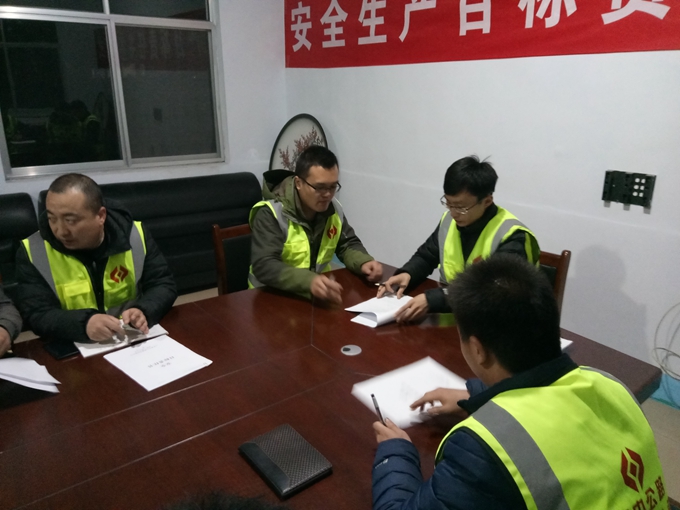 會議首先由項(xiàng)目經(jīng)理于道江對今年的工程安全形勢做出了總體介紹,對各科室、各部門安全工作任務(wù)進(jìn)行了詳細(xì)安排,與項(xiàng)目部各部門、科室之間分別簽訂了安全生產(chǎn)責(zé)任書,保障九東路安全生產(chǎn)零事故發(fā)生。九東路項(xiàng)目即將開工,對開工前的各項(xiàng)安全準(zhǔn)備工作及安全實(shí)施工作進(jìn)行了系統(tǒng)詳細(xì)的安排,做好安全及環(huán)保工作是保障生產(chǎn)的前提。要求制定完善安全監(jiān)督檢查制度;安全例會制度,通報(bào)近期安全工作情況;安全巡檢制度,不定期進(jìn)行安全巡視;加強(qiáng)機(jī)械安全管理,各類施工機(jī)械及自有車輛的安全保障;特種崗位崗前培訓(xùn),不定期進(jìn)行安全規(guī)程培訓(xùn)學(xué)習(xí);班前安全宣講制度,每道工序開展前進(jìn)行安全宣講。各部門、各科室也對今年的安全工作范圍做出了具體的匯報(bào)及安排。