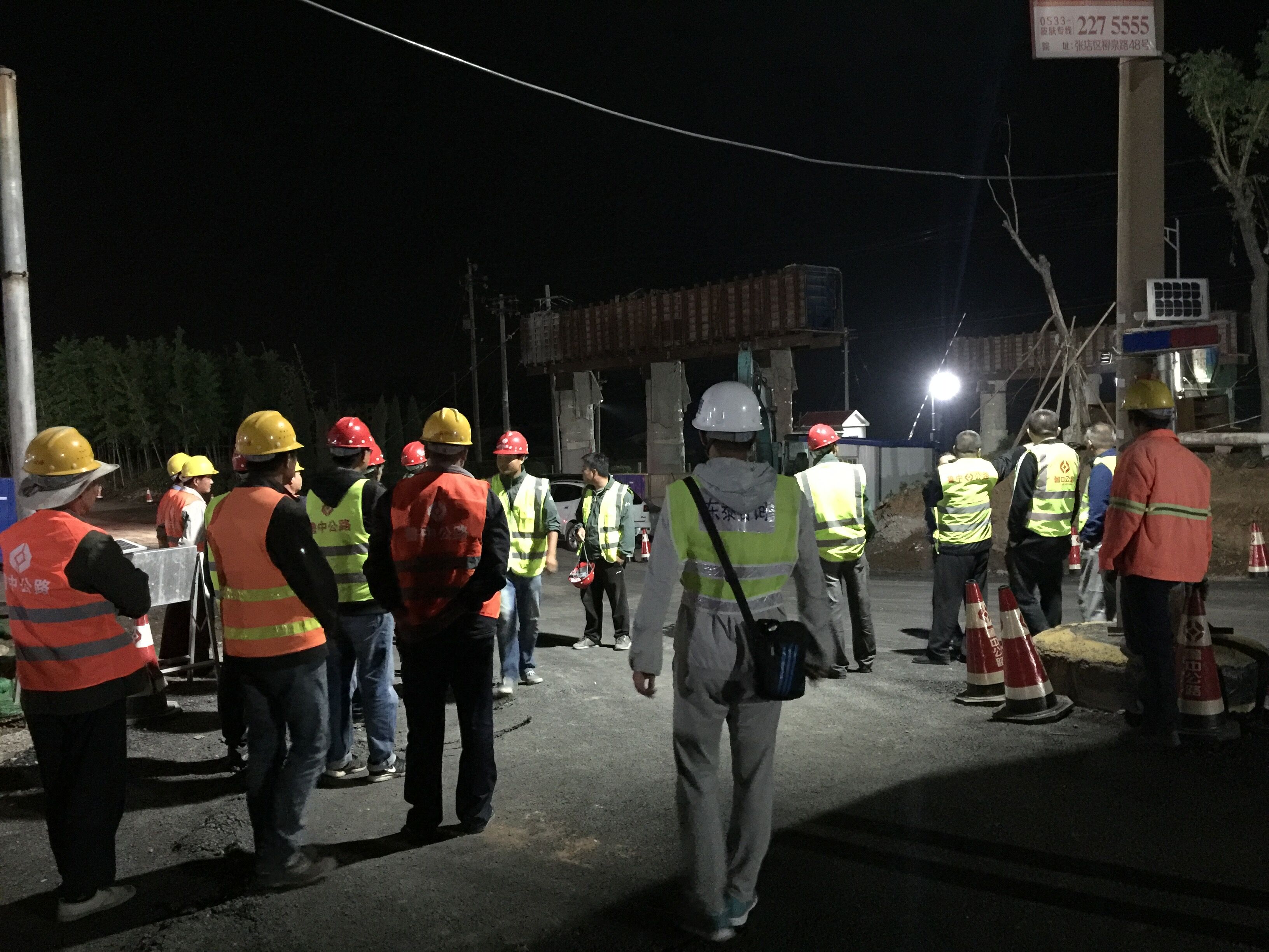 5月20日起淄博市公路管理局、總監(jiān)處、公司領(lǐng)導(dǎo)都高度重視跨張博路40米箱梁吊裝安全問題,公路局、總監(jiān)處、公司基地及橋隧工程分公司領(lǐng)導(dǎo)都輪流值班盯控。箱梁吊裝安全主要包括張博路交通安全及架橋機(jī)施工安全,由于張博路交通量大,所以交通安全刻不容緩。根據(jù)交通組織方案內(nèi)容,凌晨0點(diǎn)—凌晨5點(diǎn)進(jìn)行張博路交通封閉,改路道臨時(shí)便道。業(yè)務(wù)二部經(jīng)理周勇勇全面負(fù)責(zé)箱梁吊裝及交通安全工作;業(yè)務(wù)二部總工黎正新領(lǐng)導(dǎo)交通安全一隊(duì)主要張博路往張店方向標(biāo)志、標(biāo)牌、安全設(shè)施、反光錐擺放,交通安全及吊梁安全工作;業(yè)務(wù)二部工程部部長李杭岳領(lǐng)導(dǎo)交通安全二隊(duì)主要張博路往博山方向標(biāo)志、標(biāo)牌、安全設(shè)施、反光錐擺放,交通安全及吊梁安全工作。業(yè)務(wù)二部員工在交通封閉期間全部堅(jiān)守崗位,無論是從后勤方面、施工層面還是安全側(cè)面都要時(shí)刻保證吊裝及交通安全。通過幾天的進(jìn)程,上跨張博路箱梁吊裝工作已經(jīng)步入正軌,各級領(lǐng)導(dǎo)及全體業(yè)務(wù)部人員共同期待上跨張博路貫通時(shí)刻。