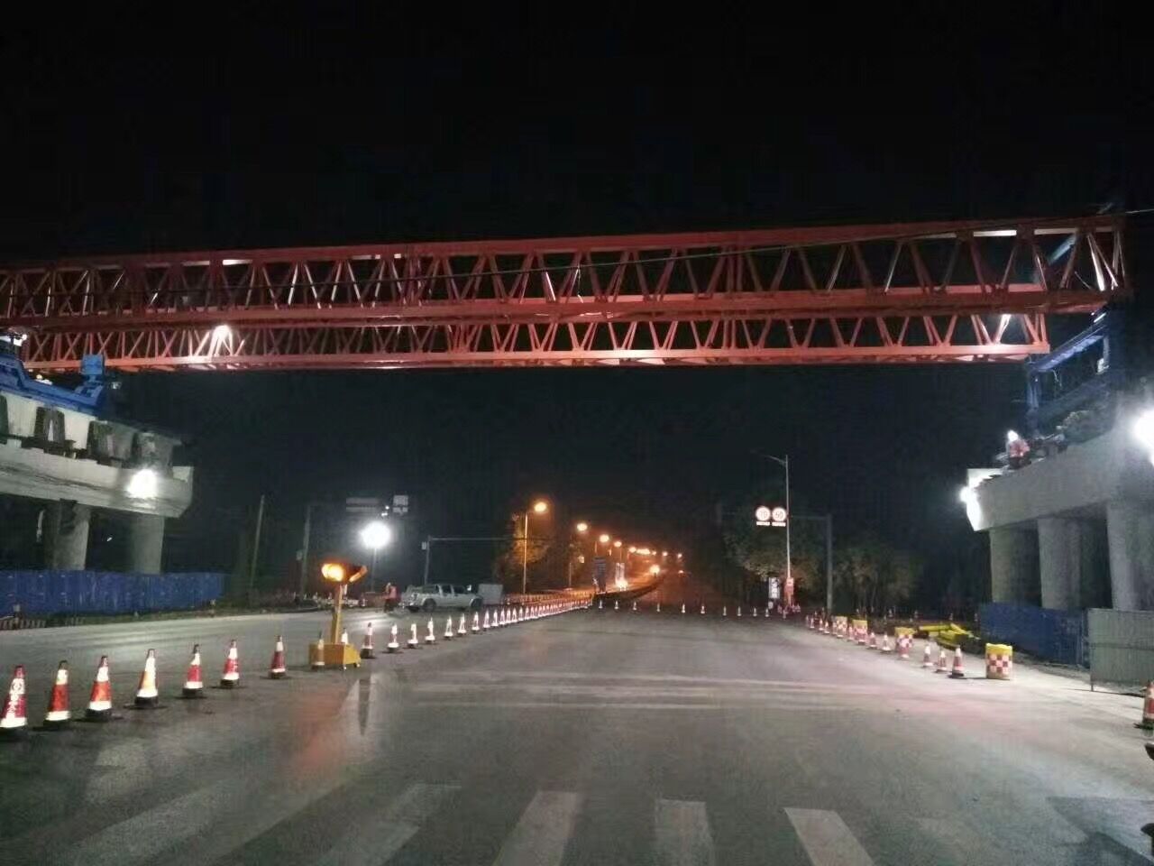 2017年5月24日凌晨,張博路分離立交開始了首片上跨張博路40m箱梁的吊裝施工,這是S102工程建設(shè)中具有里程碑意義的一夜。至此,張博路分離立交的建設(shè)進(jìn)入了新的快車道。負(fù)責(zé)張博路分離立交施工的是S102項(xiàng)目部橋隧分部,現(xiàn)場(chǎng)負(fù)責(zé)人周勇勇。這個(gè)團(tuán)隊(duì)?wèi){借其團(tuán)結(jié)、聽指揮的上行下效,贏得了項(xiàng)目部所有人員的贊賞。S294張博路是淄博市境內(nèi)的主要交通干線,車流量大,車速快,S102上跨張博路位置又處在淄川區(qū)雙楊鎮(zhèn)的重要路口,附近陶瓷廠、磨料場(chǎng)的生產(chǎn)規(guī)模大,平時(shí)可謂車水馬龍;跨鐵路施工歷來是讓人頭疼的難題,交涉、辦手續(xù)、再交涉、再辦手續(xù),可任你如何的發(fā)急發(fā)狠,一道歷史久遠(yuǎn)的張博鐵路就這樣靜靜的臥在我們面前。困難,不言而喻,為如期保質(zhì)、安全的完成工程施工,橋隧分部人員做了大量的現(xiàn)場(chǎng)調(diào)查、方案論證,交通組織設(shè)計(jì)再三修改,施工人員準(zhǔn)時(shí)在上、下班交通高峰期間指揮交通、警示行人。提起橋隧分部,項(xiàng)目經(jīng)理翟峰總是贊不絕口,“很久沒有看到這樣的團(tuán)隊(duì)了,負(fù)責(zé)人帶頭干,一家人跟著沖,有活力,有擔(dān)當(dāng)”,這是大家都有目共睹的,春節(jié)過后,橋隧分部每周的施工進(jìn)度全部都能按照計(jì)劃完成,計(jì)劃落實(shí)情況是項(xiàng)目部下屬各個(gè)單位中做的最好的,往返工地,也經(jīng)常能看到汗流浹背、衣衫濕透的周勇勇在指揮著橋下交通。5月20日、21日晚,為保證首片上跨張博路40m箱梁的順利進(jìn)行,橋隧分部連續(xù)兩個(gè)晚上進(jìn)行了張博路交通試封閉工作。凌晨時(shí)分,來往大車依然絡(luò)繹不絕,且絲毫沒有減速的意圖,現(xiàn)場(chǎng)負(fù)責(zé)人周勇勇用電話向橋下的兄弟們發(fā)出一份份清晰、準(zhǔn)確地指令,橋下的工作人員在接收到指令后隨時(shí)對(duì)交通的交通進(jìn)行疏導(dǎo),這是一群虎狼之師,敢打敢拼,從不言敗。
