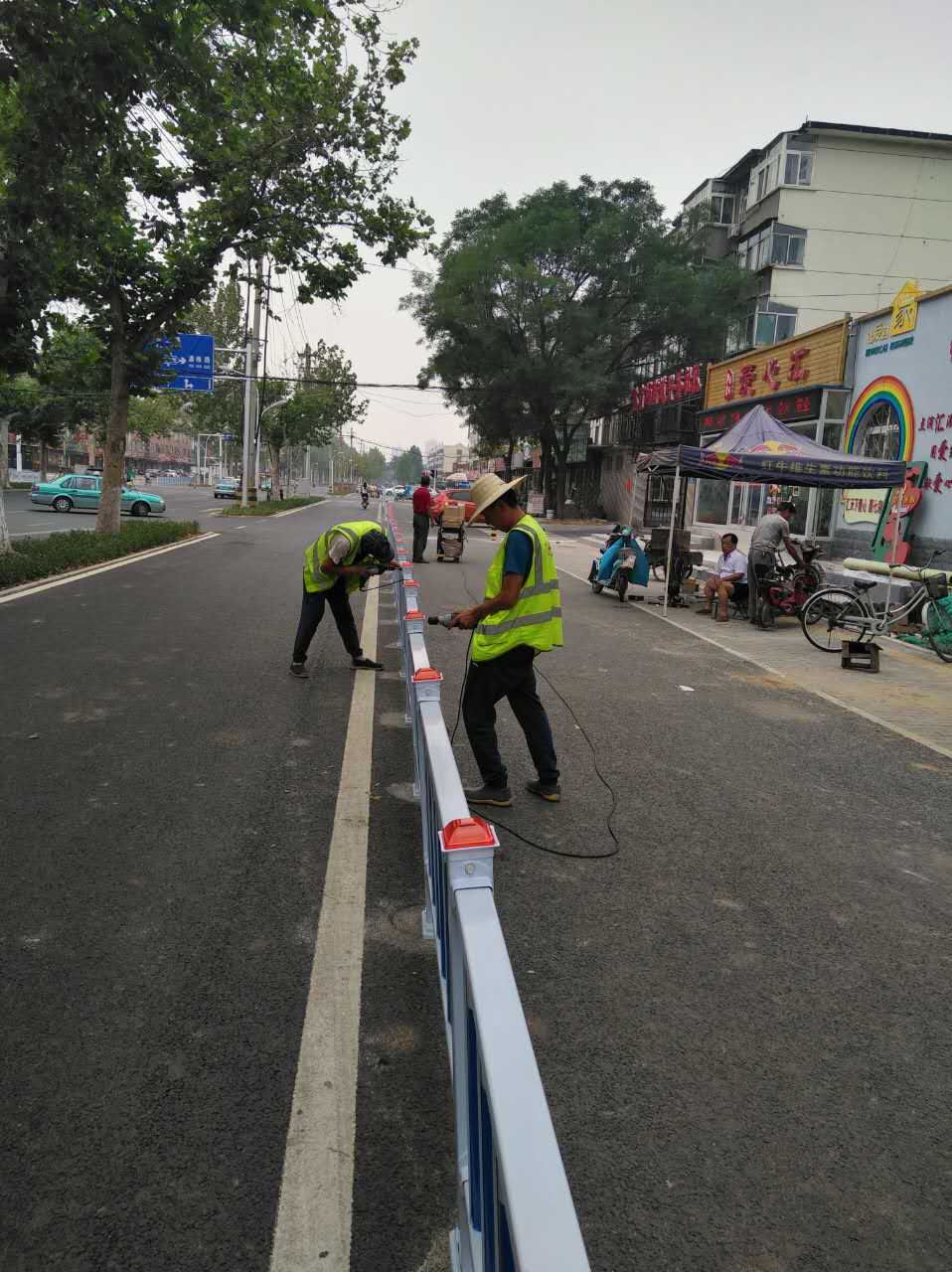 路面工程分公司承接的人民路公交隔離護(hù)欄目前正在進(jìn)行安裝工作,人民路公交隔離護(hù)欄共計(jì)長度5030米,現(xiàn)已完成安裝3600米,項(xiàng)目部積極投入人員和機(jī)械力量,現(xiàn)場人員加班加點(diǎn),保證以最快的速度完成。根據(jù)項(xiàng)目部計(jì)劃7月15日完成人民路公交護(hù)欄的安裝工作。新型公交護(hù)欄采用白色底漆,豎桿加以藍(lán)色反光噴漆,立柱安裝太陽能柱帽,新型公交護(hù)欄的安裝已成為人民路上一道亮麗的風(fēng)景線,實(shí)現(xiàn)了公交車與非機(jī)動(dòng)車的隔離作用,既保障了行車安全又改善了人民路交通擁擠的狀況。
