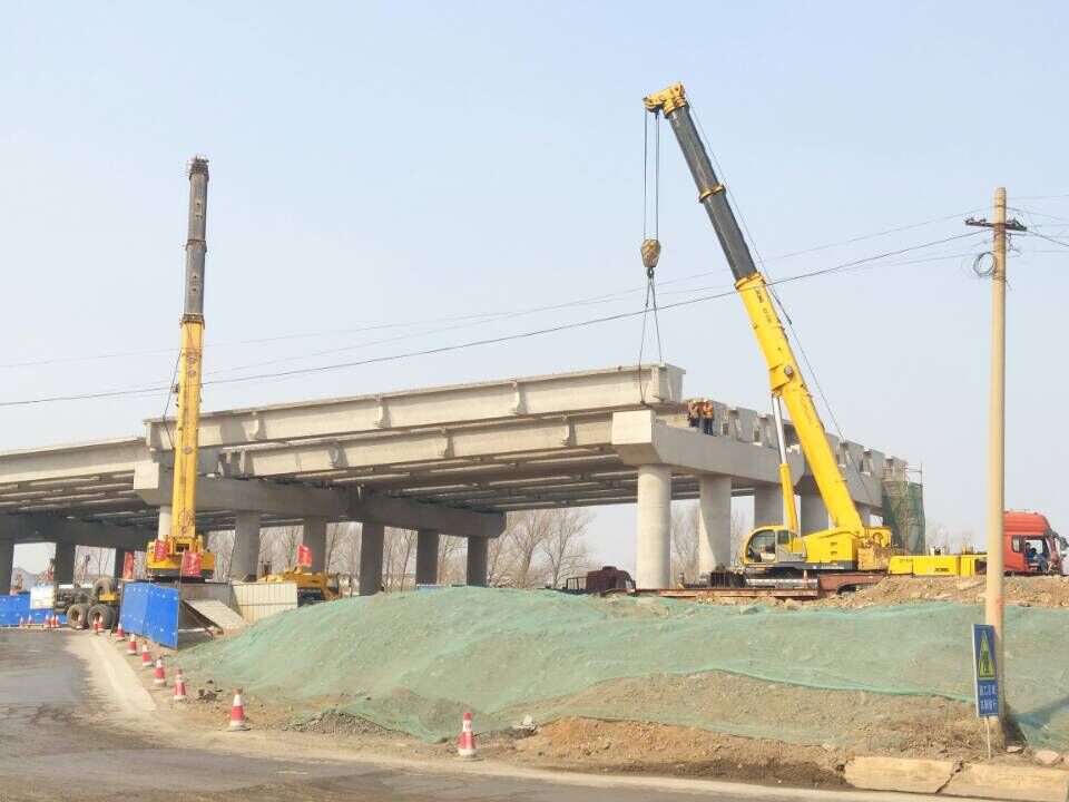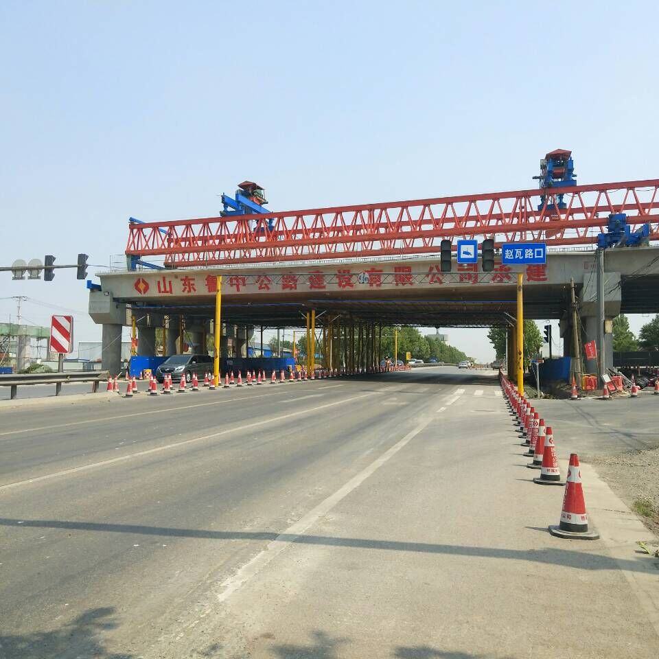 2017年5月23日,第20孔跨S294張博路架梁開始。為了這一天的到來,項目部人員可謂是克服了種種困難。不知多少遍的與公路局、交警大隊、雙楊鎮(zhèn)政府等各上級部門協(xié)調(diào)、溝通,方案也不斷的進行優(yōu)化。最終確定下來,在趙瓦路口東西兩側(cè)新修兩條輔道,晚0點至凌晨5點對趙瓦路口進行封閉施工,過往車輛從兩側(cè)輔道慢速通行。為了保證張博路車輛通行安全,在架梁前,項目部全體人員進行了夜間道路封閉演練,演練按計劃順利完成。在歷經(jīng)了5個夜晚后,跨張博路箱梁架設完畢。