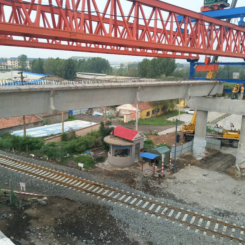 2017年7月5日,第18跨跨張博鐵路箱梁架設開始??玷F路施工我項目部是第一次接觸,再加上鐵路協(xié)調(diào)難度比較大,所以從年后就開始為跨鐵路施工做準備,方案評審、各鐵路設備單位安全協(xié)議簽訂、路局施工計劃下達、各配合單位的配合通知單簽訂,一套程序走下來就得2-3個月,但不怕困難、迎難而上的我們硬是在不懈的努力中啃下了這塊硬骨頭。在經(jīng)歷5個天窗點,第17、18跨箱梁架設完畢,這也代表著張博路分離立交橋所有箱梁架設完畢。