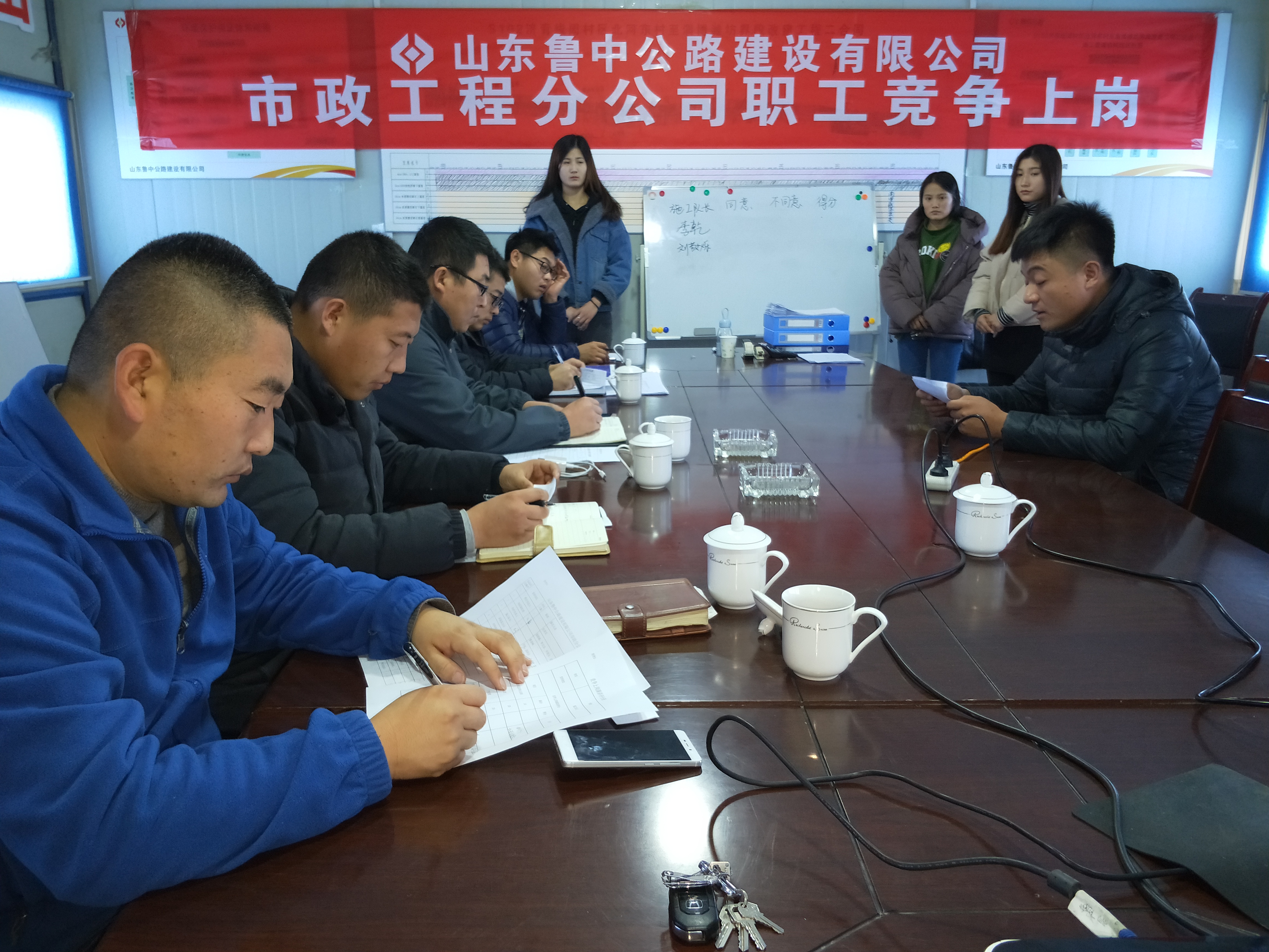 2017年12月23日開始,魯中市政工程分公司采取多種形式組織競爭上崗工作。此次競崗工作市政分公司本著公平、公正、公開的原則開展競崗工作,為各個崗位選拔優(yōu)秀人才。