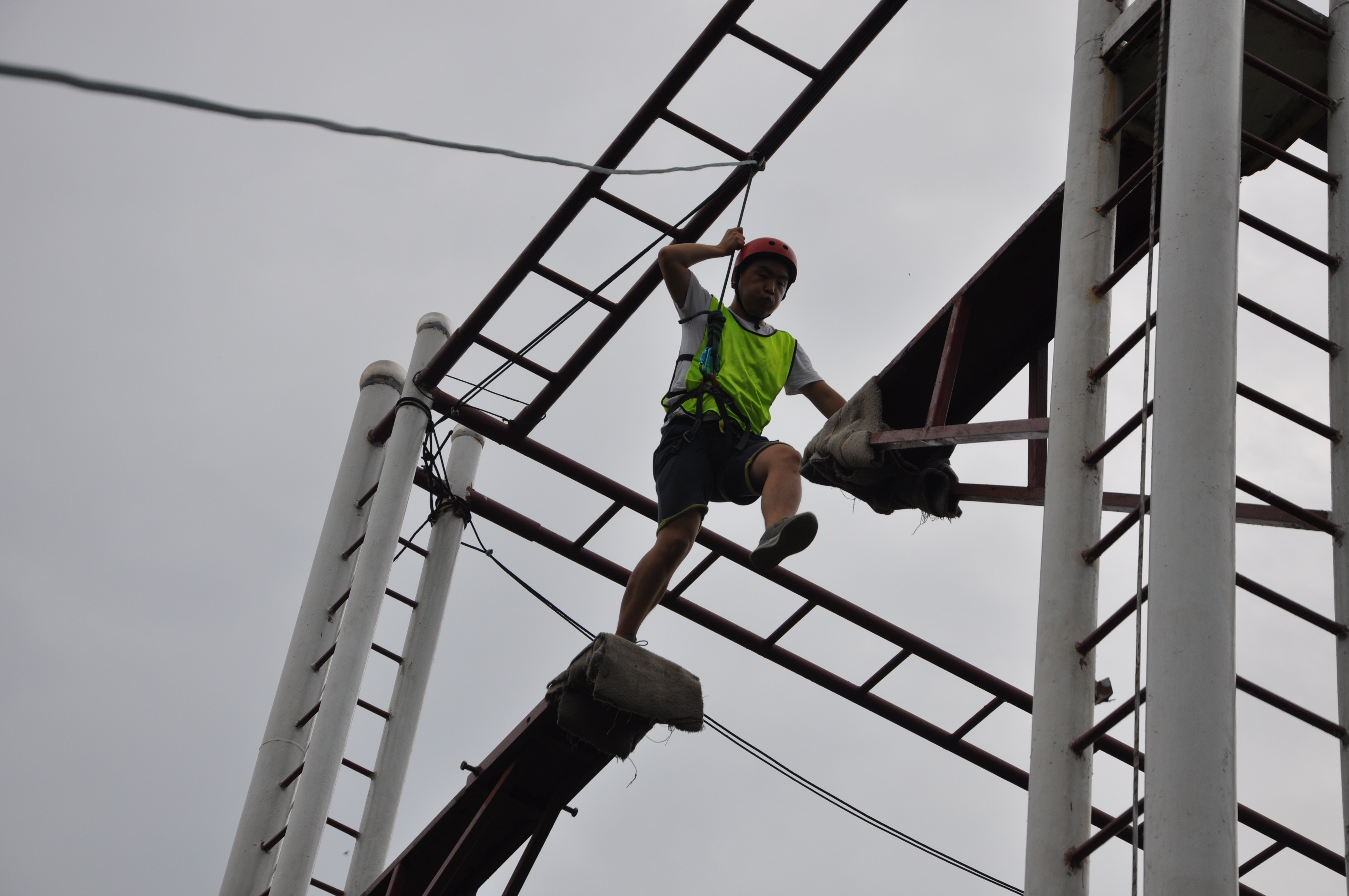 隊員在八米多高的高空斷橋上勇敢的挑戰(zhàn)自己