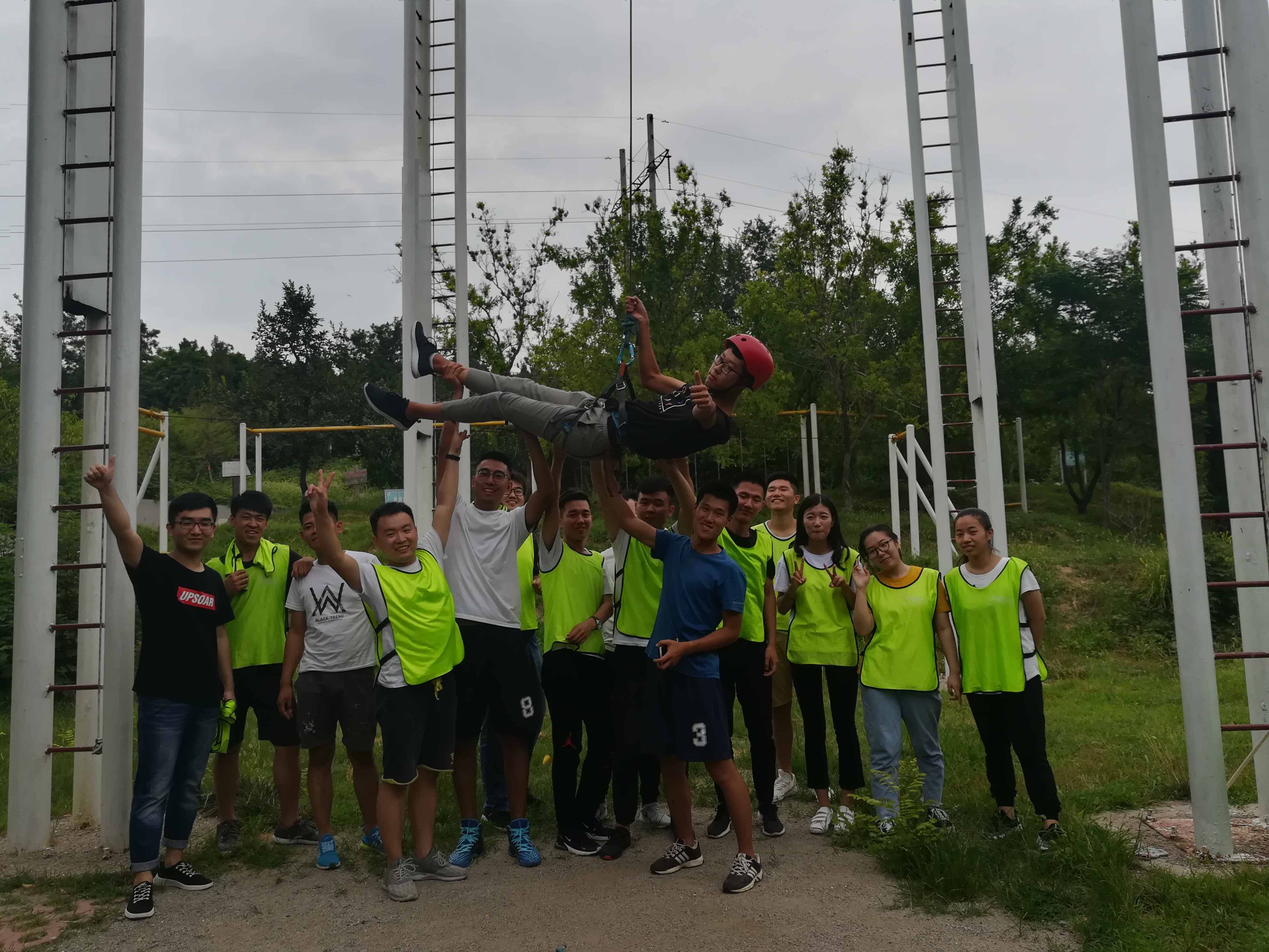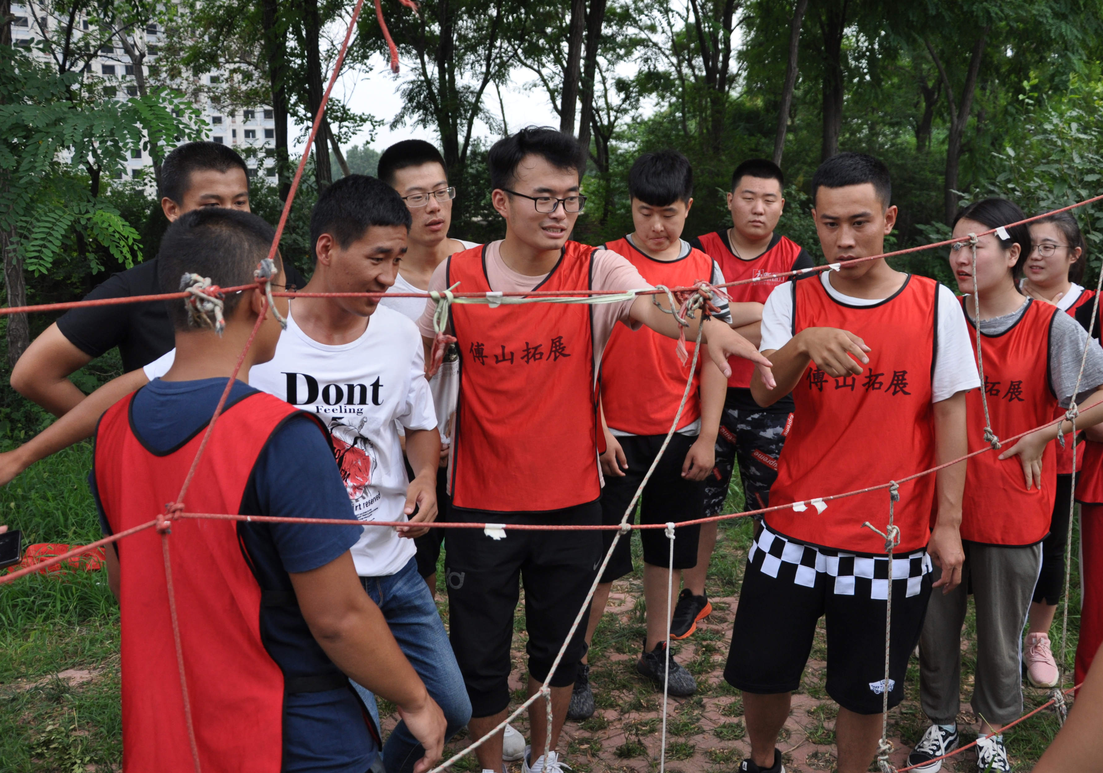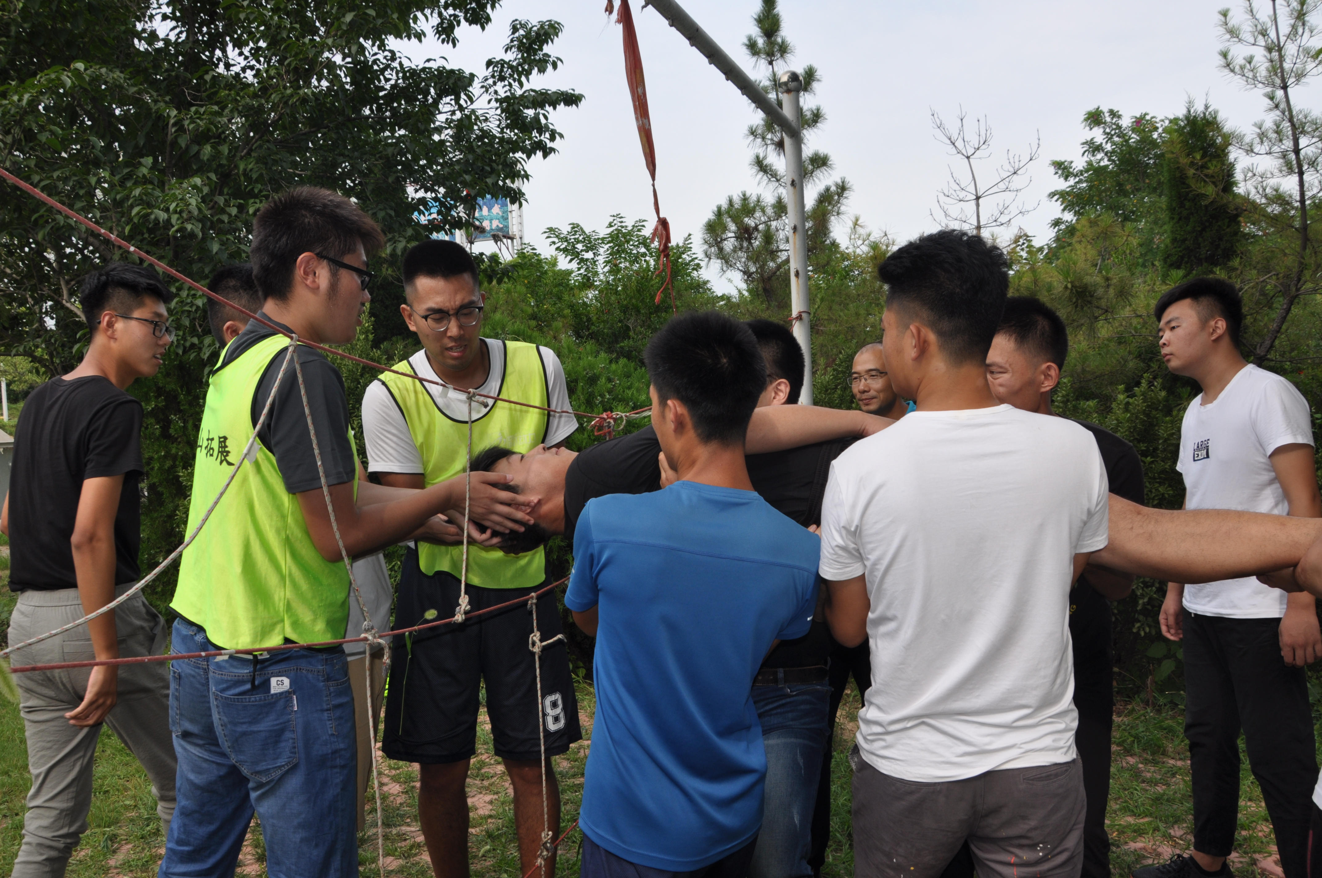 內(nèi)訓(xùn)結(jié)束后,所有新員工拉開了室外素質(zhì)拓展訓(xùn)練的序幕。教練將全體隊員分為兩個小隊,并積極展開了團(tuán)隊建設(shè)活動,各隊通過集思廣益,積極建言獻(xiàn)策,最終“勇者隊”和“前進(jìn)隊”應(yīng)運而生。