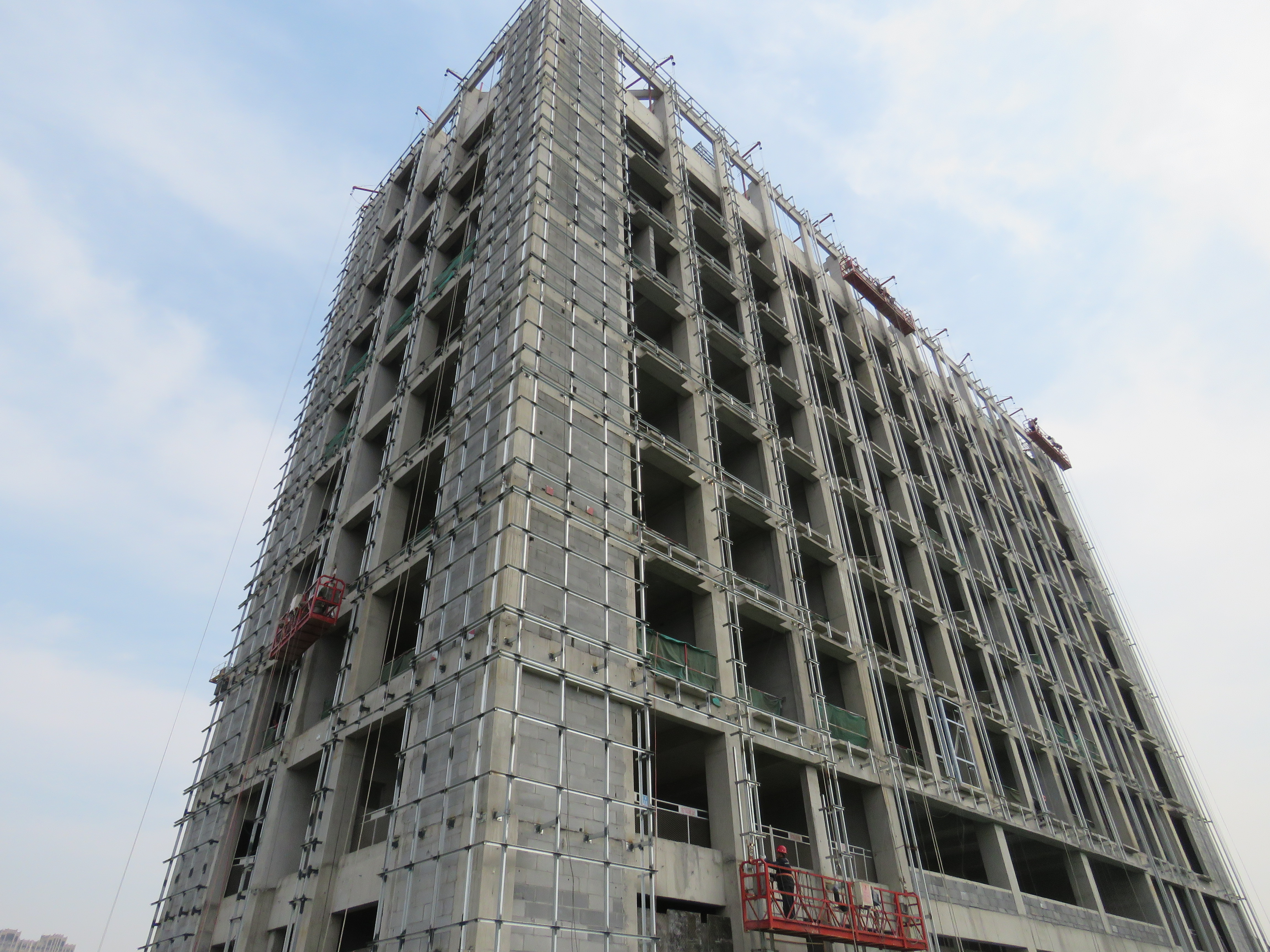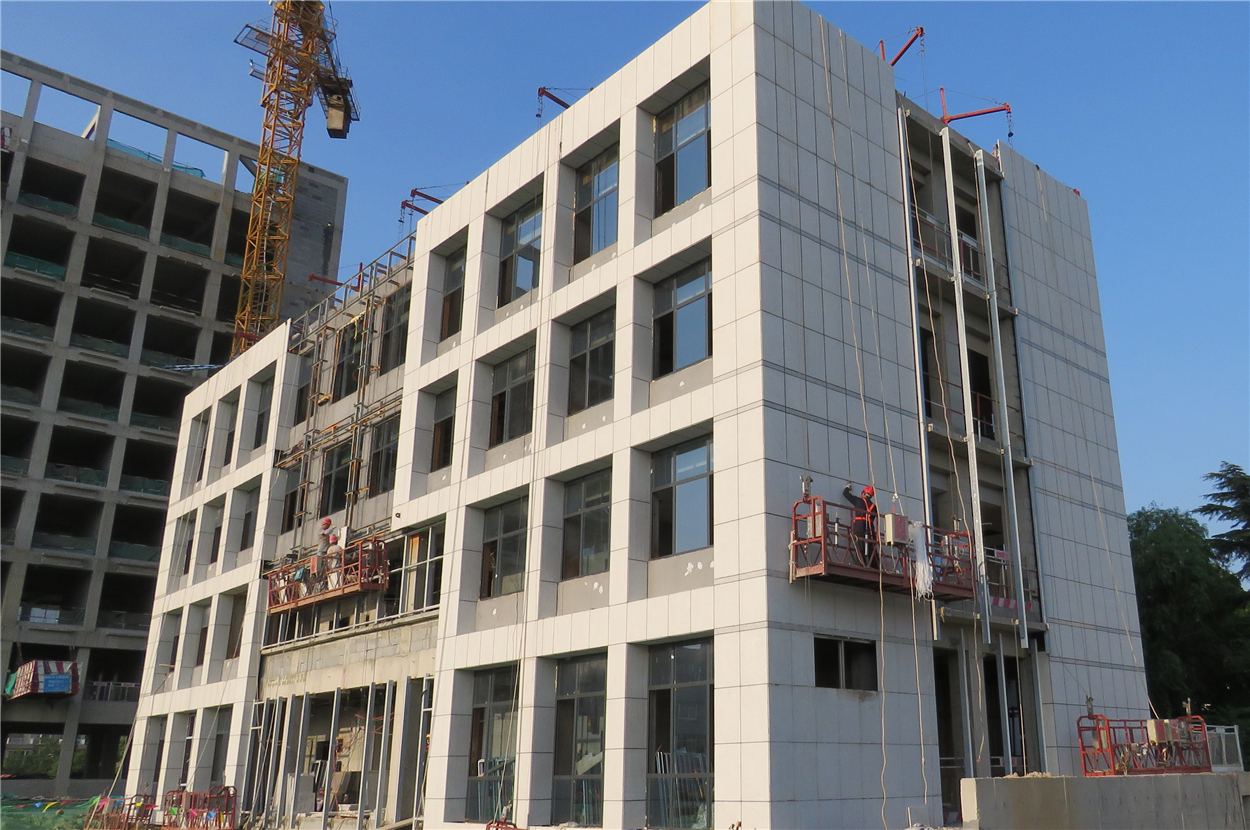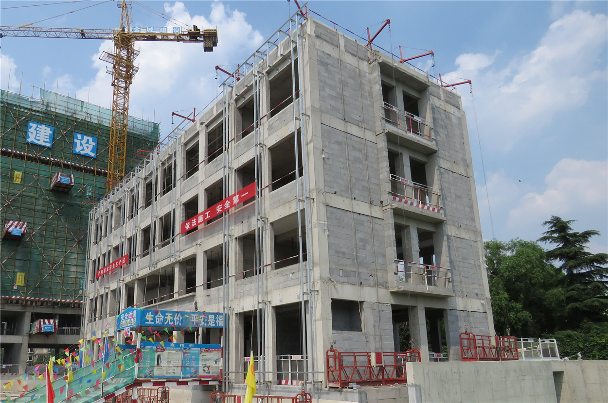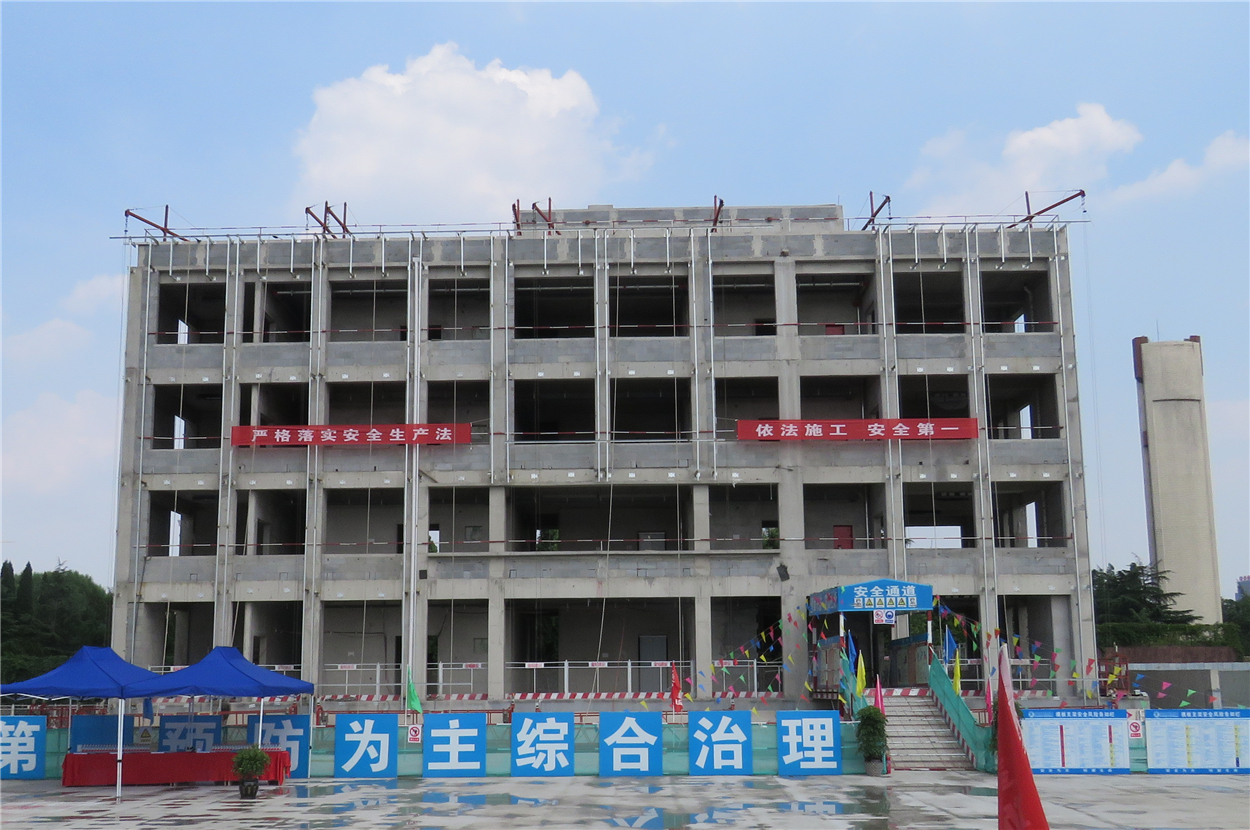 市政檢測樓(2#)于2018年4月25日封頂,其建筑高度15.1米。內(nèi)外隔墻均采用新型節(jié)能材料加氣混凝土砌塊砌筑。