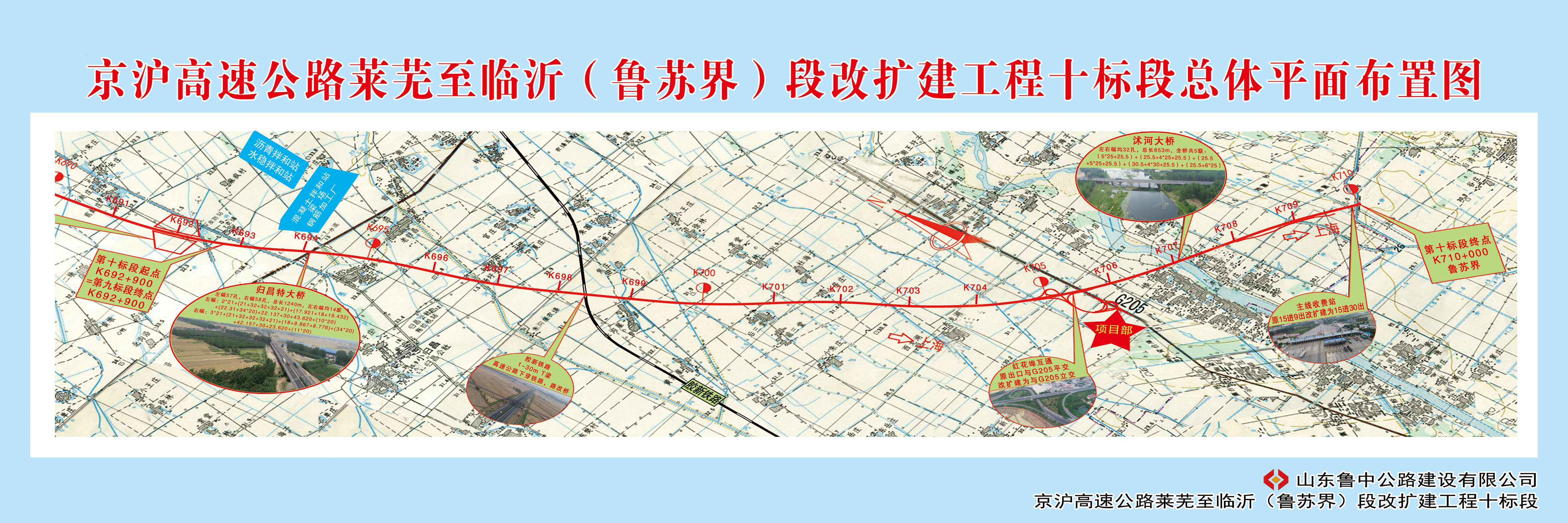 京滬高速公路萊蕪至臨沂(魯蘇界)段改擴建工程起于萊蕪市萊城區(qū),止于京滬高速公路魯蘇省界,接京滬高速公路江蘇段,是我國線路高速公路干線網中舉足輕重的一環(huán),對加強京魯蘇滬之間的經濟聯(lián)系與合作、促進沿線地區(qū)乃至中國的經濟發(fā)展具有重要意義。全線按照雙向八車道高速公路技術標準改擴建,臨沂段線路全長232.191km,設計時速120公里/小時,項目主體工程計劃完工時間為2020年年底。