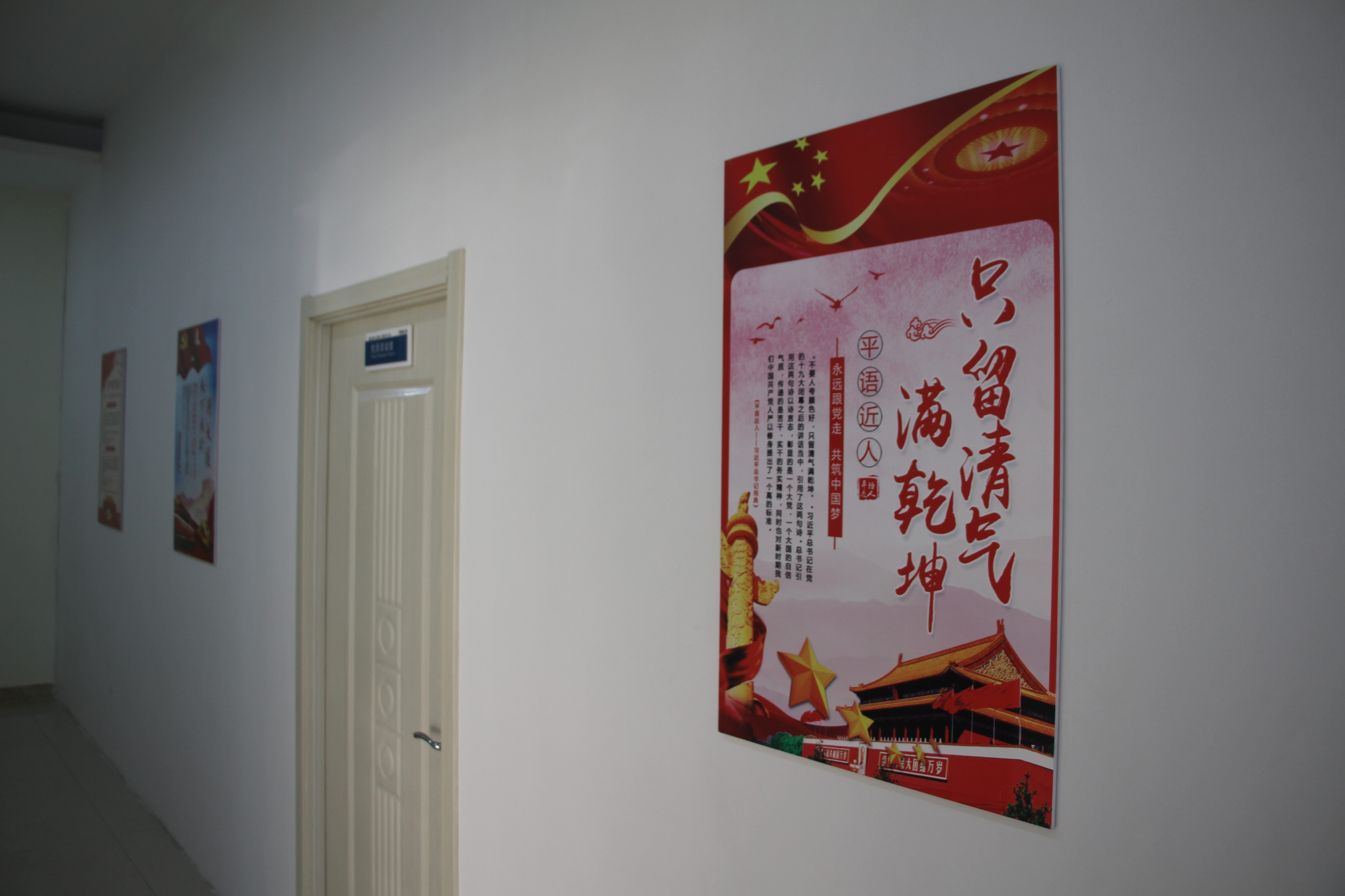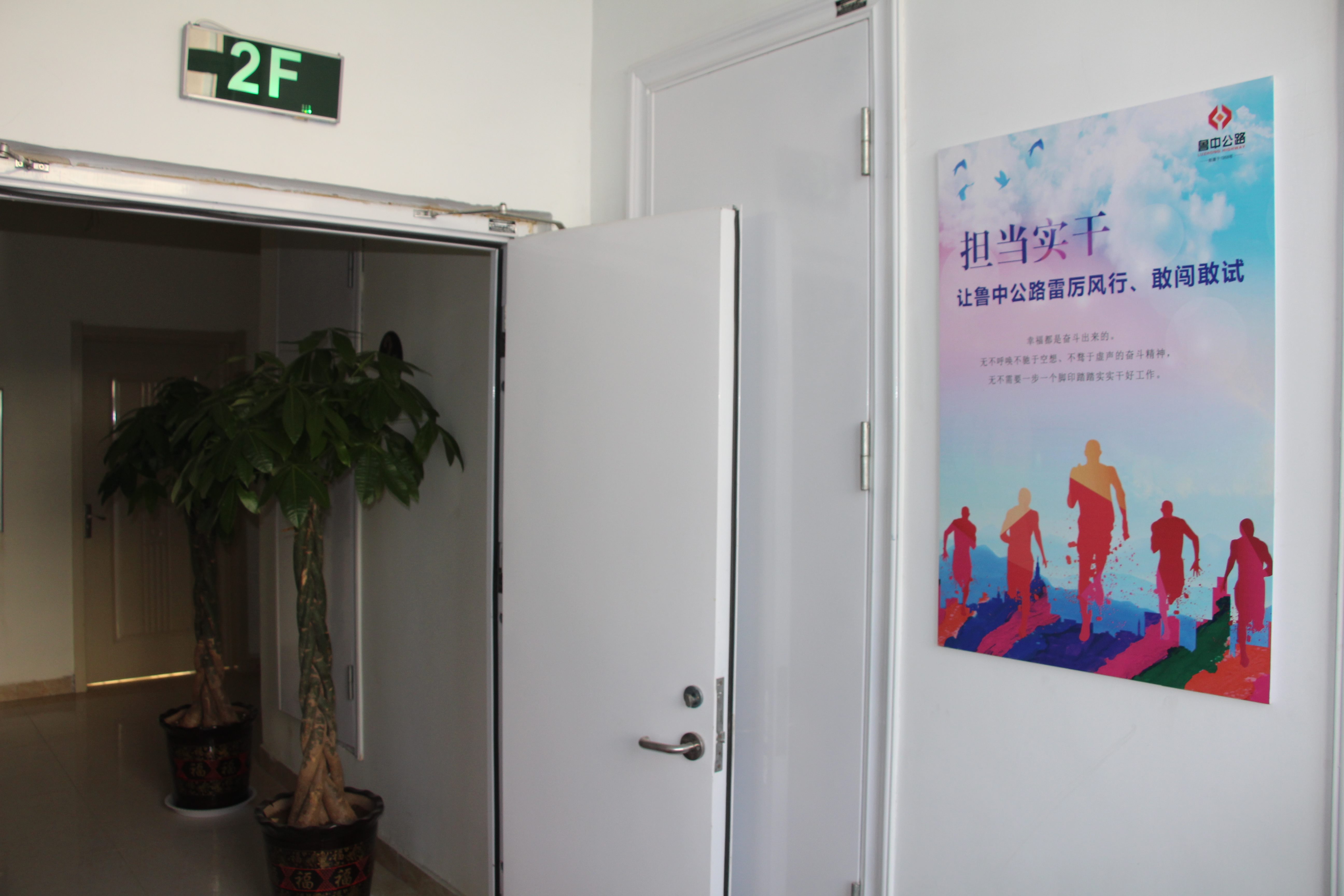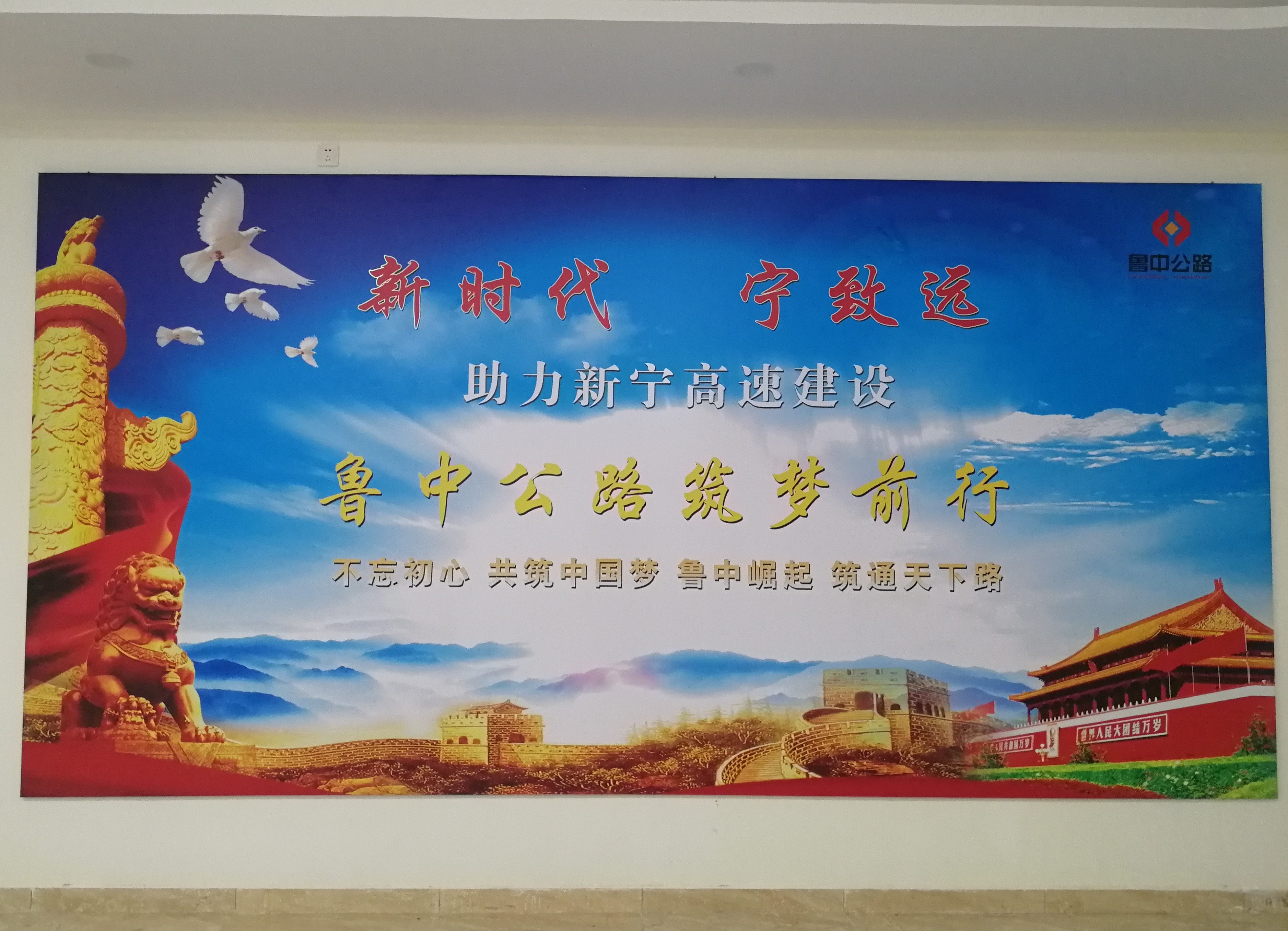 推開項目部大門,進入一樓大廳內,首先映入眼簾的是魯中公路標志及文化標語。