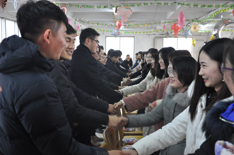 13:14分,隨著全場人員的倒計時,成功開啟了本屆聯(lián)誼會寓義著“一生一世”的愛情密碼,原本陌生的彼此,解開心中的冰層,伴隨著熱情的音樂,大家圍圈而舞,先前的拘謹與羞澀,在律動中逐漸褪去,整個會場氣氛熱情高漲,一片歡聲笑語。