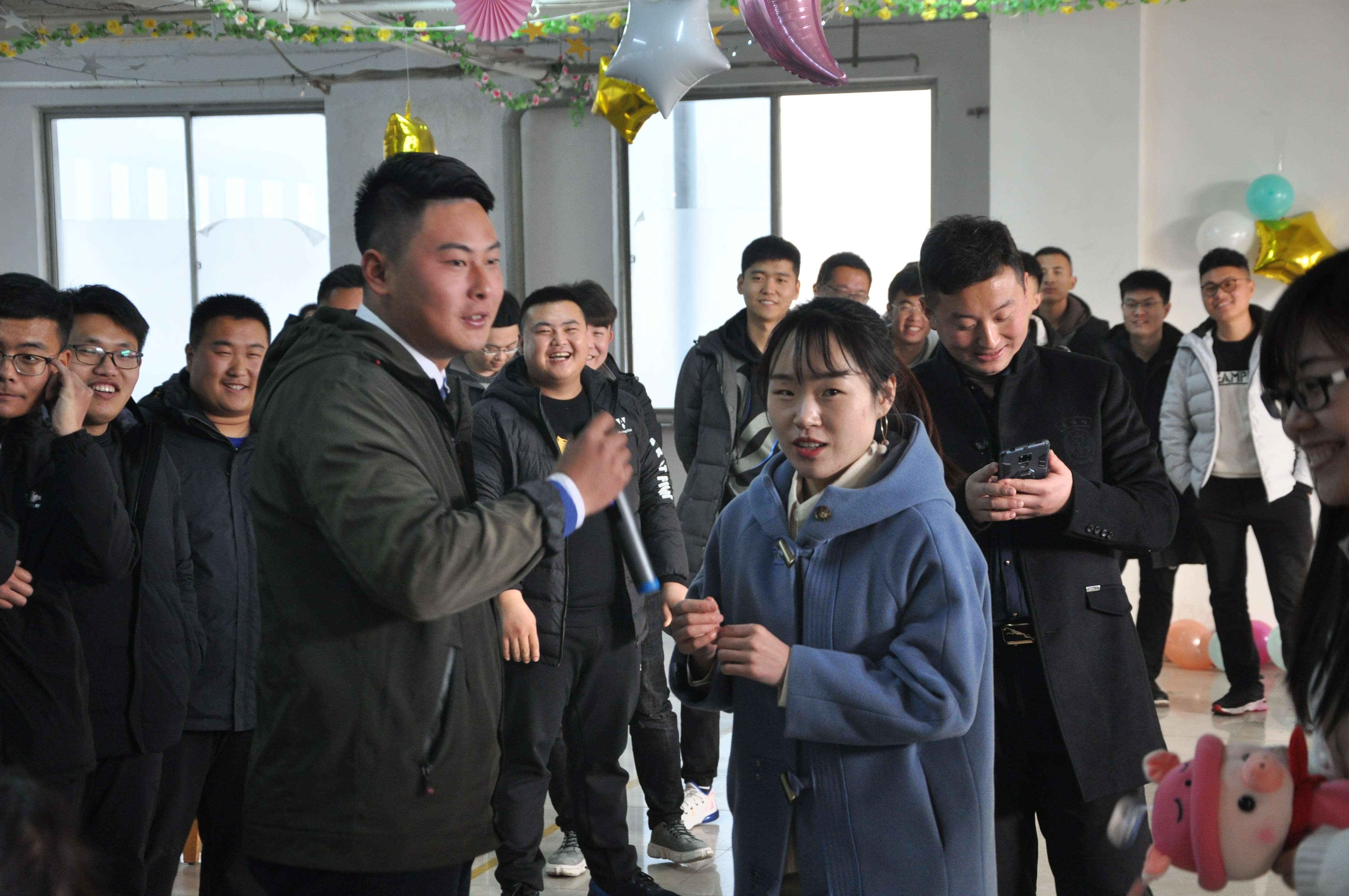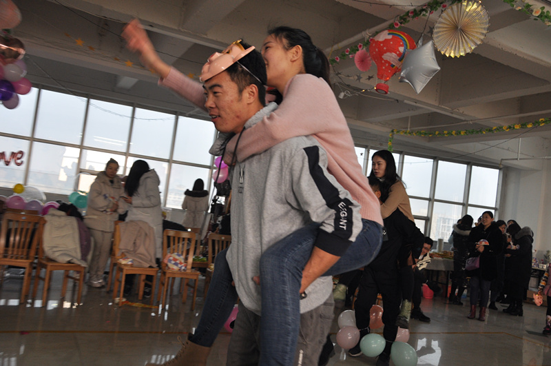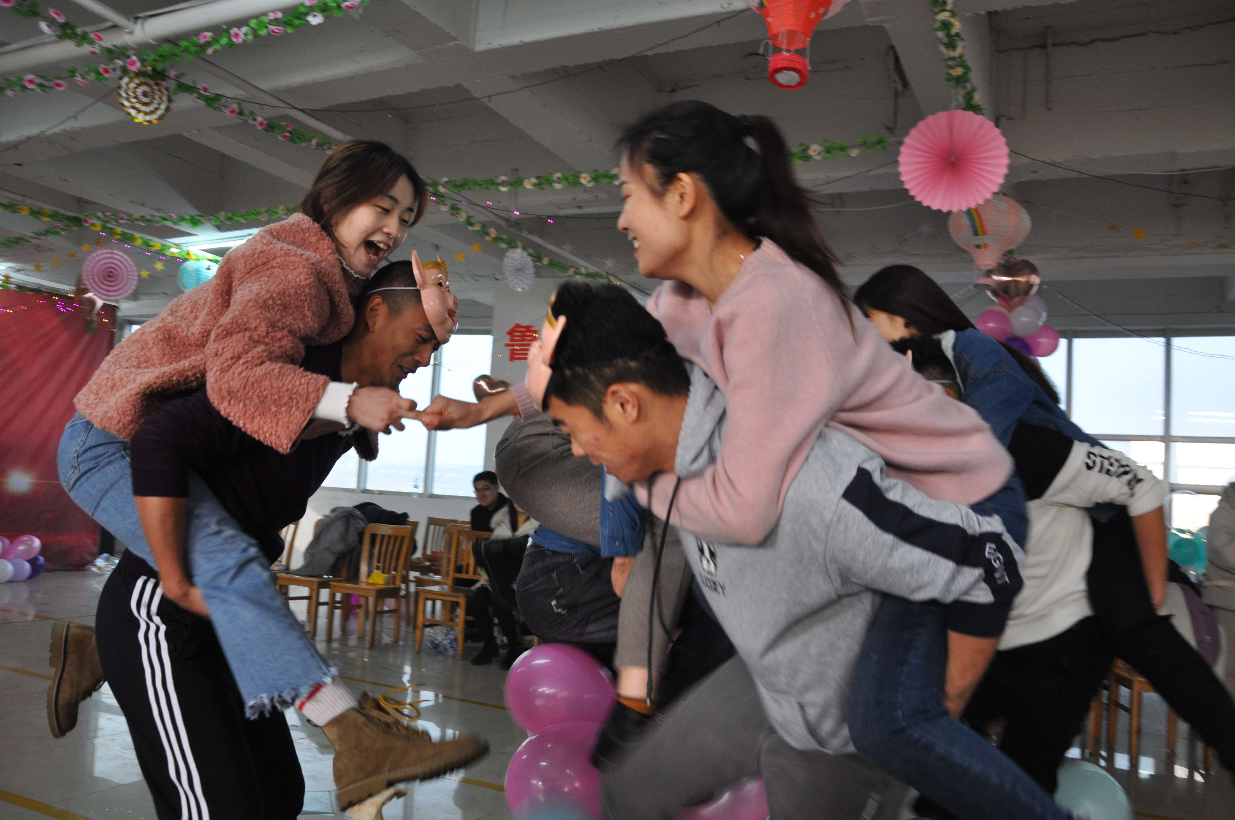 通過“認識你”,展現(xiàn)出青年人團結協(xié)作、擔當果敢,和快速掌握技巧的大智慧。接下來則是為契合豬年諸事順利、心想事成,極力展現(xiàn)男孩子們個人魅力而設計的“八戒闖關”游戲。男生們紛紛帶上八戒面具,背著女孩子斬關奪隘,緊張火熱的游戲,引來大家喝彩、尖叫聲不斷。一個堅毅而踏實的臂膀,不僅僅能壘砌通天下的路,更能為心中的她擎一片天,守護一生的幸福。