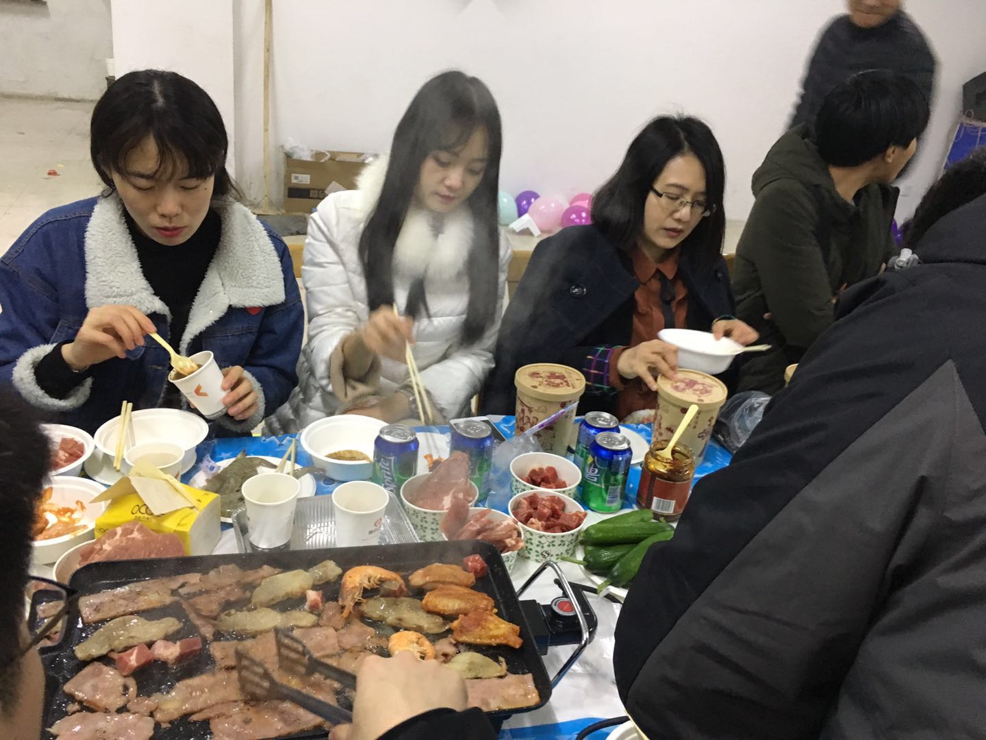 12:30分,原本有些陰霾的天氣,透出絲絲的陽光,映在臉上,照進心間,女孩子們乘坐的大巴車一抵達,小伙子們立即迎上去貼心的為女孩子們送上暖手袋。引入會場后,趕緊殷勤的捧上香濃美味的“臘八粥”,爭搶著上前遞上甜蜜的各式糕點。女孩子紛紛被小伙子們逗得漲紅了臉,笑彎了眼,隨著氣氛的逐漸活躍,大家也彼此熟絡起來。