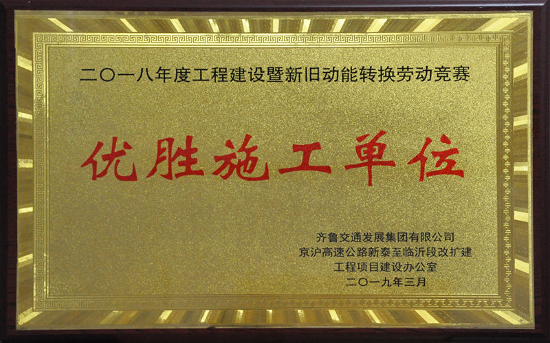 2019年2月20日,齊魯交通發(fā)展集團(tuán)在濟(jì)南召開工程建設(shè)動(dòng)員大會(huì),會(huì)上對(duì)2018年度優(yōu)秀參建單位及個(gè)人進(jìn)行了表彰,通報(bào)了2018年度勞動(dòng)競(jìng)賽開展情況及年度綜合考核、檢查情況,部署了2019年高速公路建設(shè)任務(wù),并授予山東魯中公路建設(shè)有限公司“優(yōu)秀施工單位”稱號(hào);3月9日京滬高速公路萊蕪至臨沂(魯蘇界)段改擴(kuò)建工程項(xiàng)目辦在臨沂召開加快工程建設(shè)暨“春季百日大干”動(dòng)員大會(huì),會(huì)議總結(jié)了2018年取得的豐碩成績(jī),制定了“春季百日大干”施工計(jì)劃,指出了了下一步工作重點(diǎn),并授予魯中公路“優(yōu)勝施工單位”榮譽(yù)稱號(hào)。