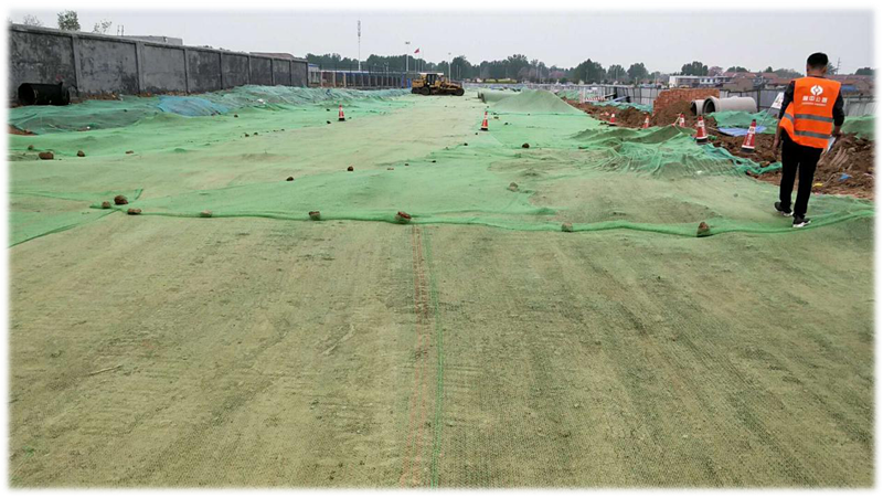 魯中公路經(jīng)開區(qū)道路工程工地防揚塵非施工區(qū)域全部采用綠網(wǎng)覆蓋