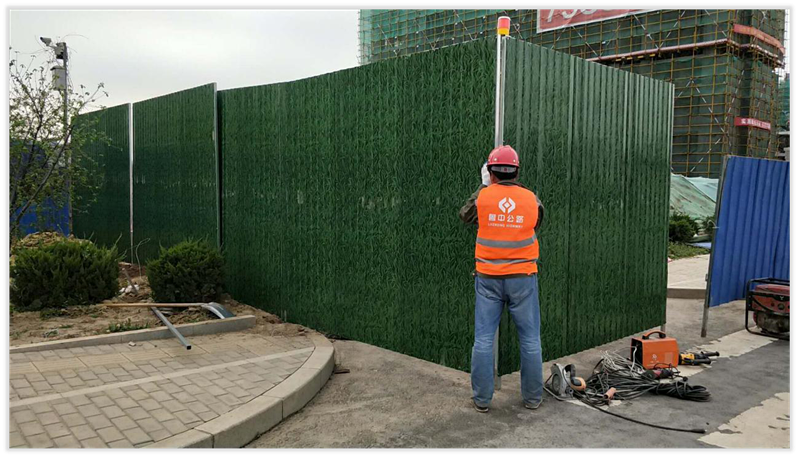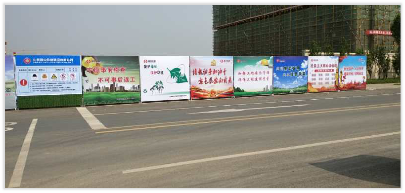 近年來山東省政府在建筑市場大搞生產(chǎn)安全、環(huán)境環(huán)保治理活動,淄博經(jīng)開區(qū)建設(shè)局要求在地面和空中都不能看到工地有揚塵產(chǎn)生,建筑生產(chǎn)環(huán)境必須符合整齊、安全、環(huán)保的要求。魯中公路淄博經(jīng)開區(qū)道路工程項目,及時采取有效措施,既符合政府新標(biāo)準(zhǔn)又突出山東魯中公路文化建設(shè)的主線,適時更換2.75m×2.5m規(guī)格綠植畫面彩鋼圍擋,設(shè)制有山東魯中公路建設(shè)有限公司形象的臨時大門,把環(huán)保、安全、時政宣傳、公益廣告圖案等安裝到圍擋上,即節(jié)約制作與安裝成本,又美化了施工圍擋,還為魯中公路文化建設(shè)做了形象宣傳。