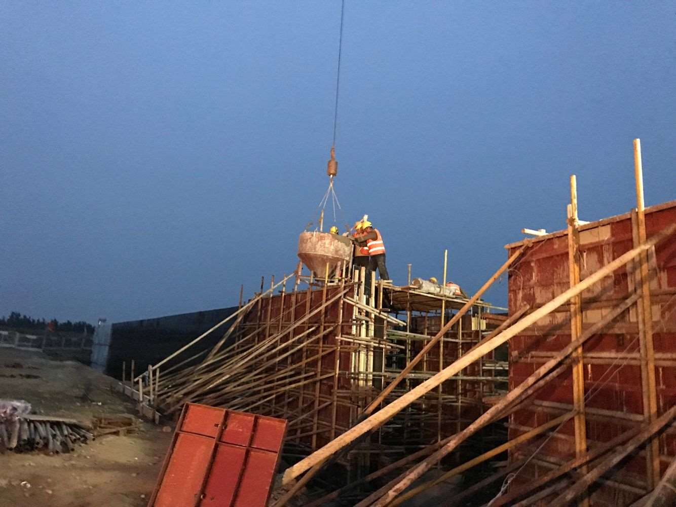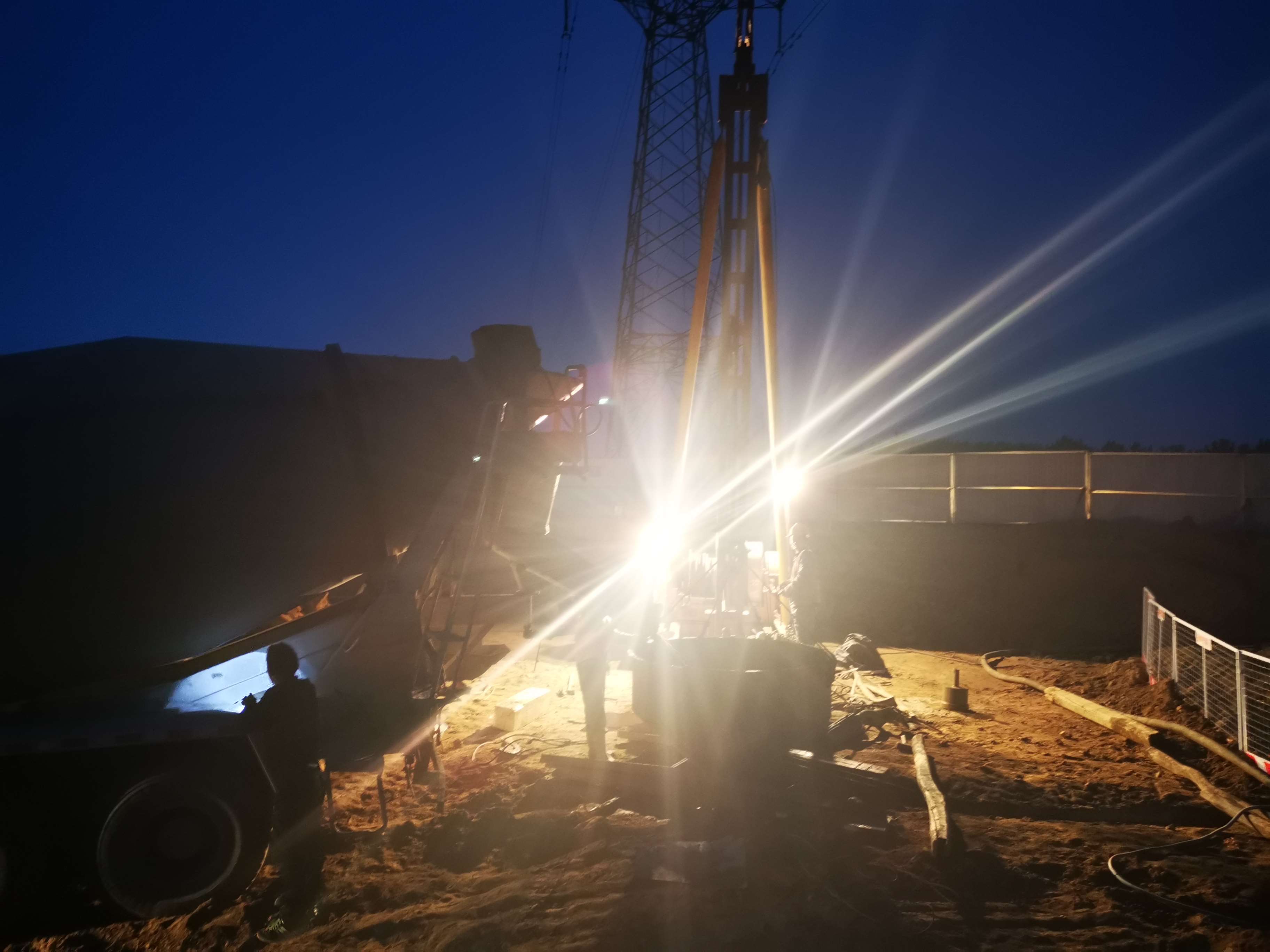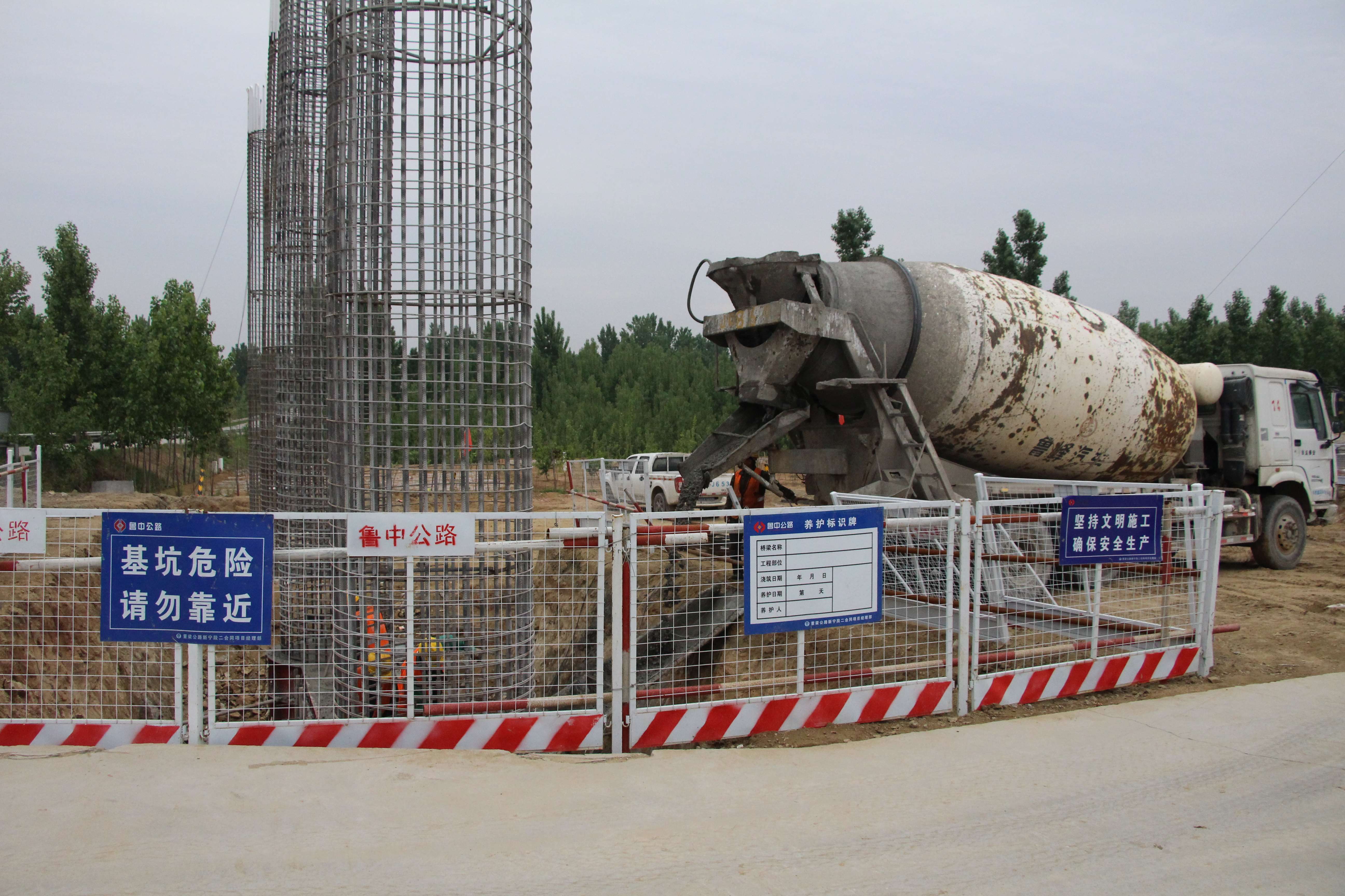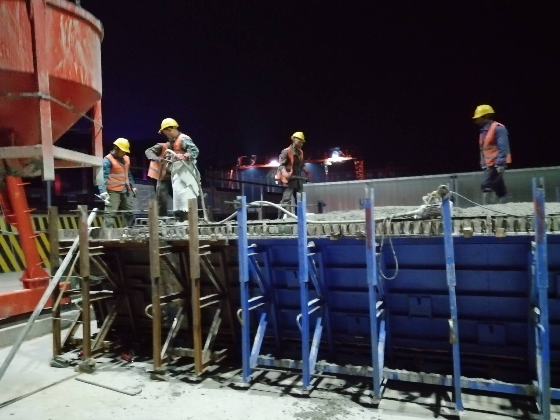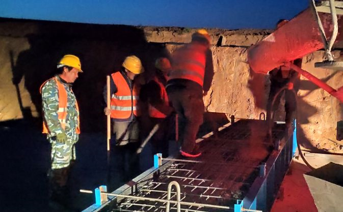 由于今晚還有樁基灌注任務(wù),范廣金、趙祥坤、劉亞坤等幾名現(xiàn)場(chǎng)管人員匆匆拔了幾口飯便又返回了現(xiàn)場(chǎng),隨著一車(chē)車(chē)混凝土運(yùn)到施工現(xiàn)場(chǎng),伴著一根根樁基、系梁、一片片涵身順利澆灌完畢,時(shí)間也已來(lái)到了晚上22:00。