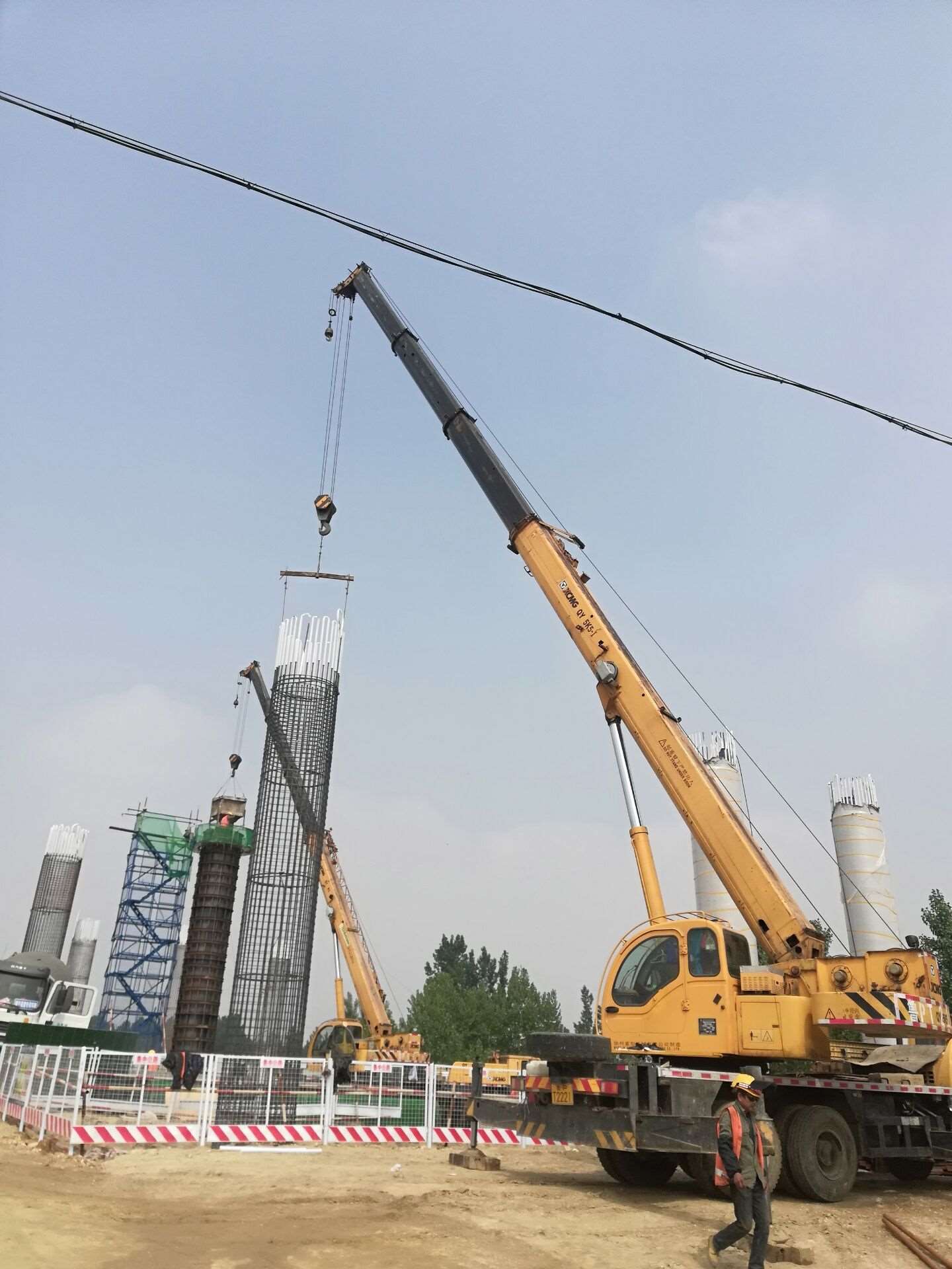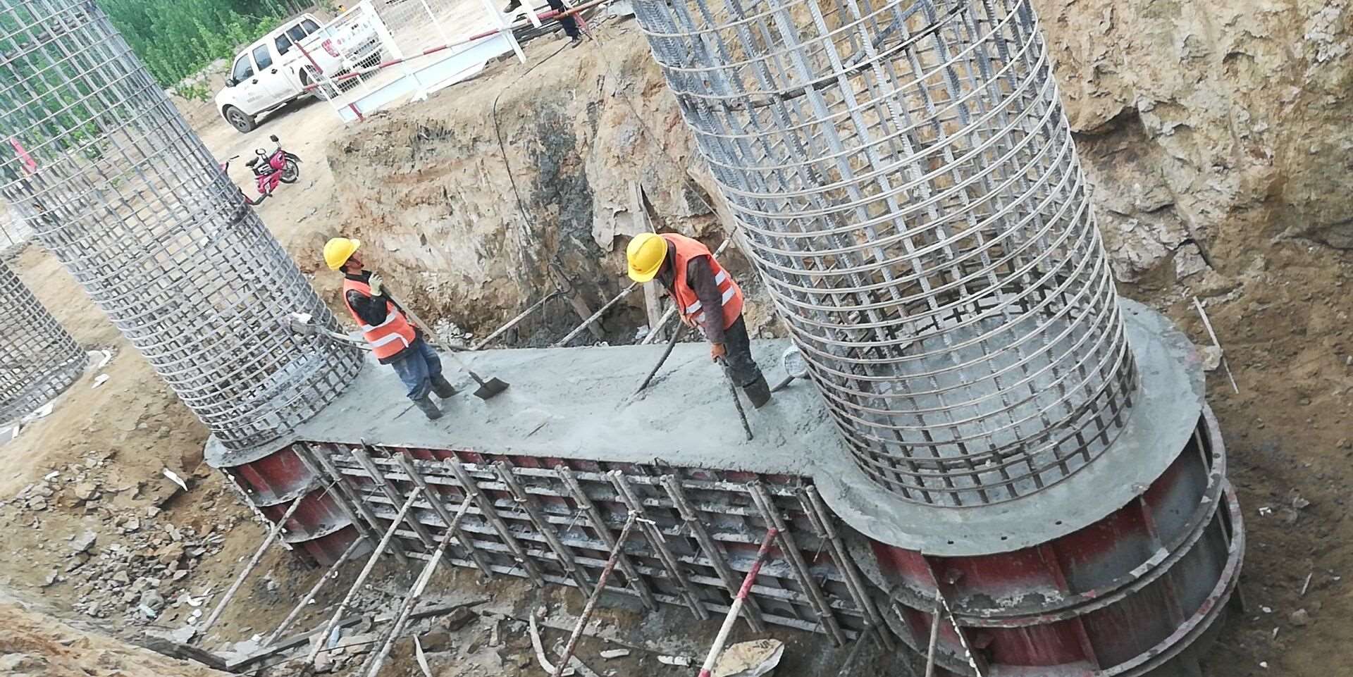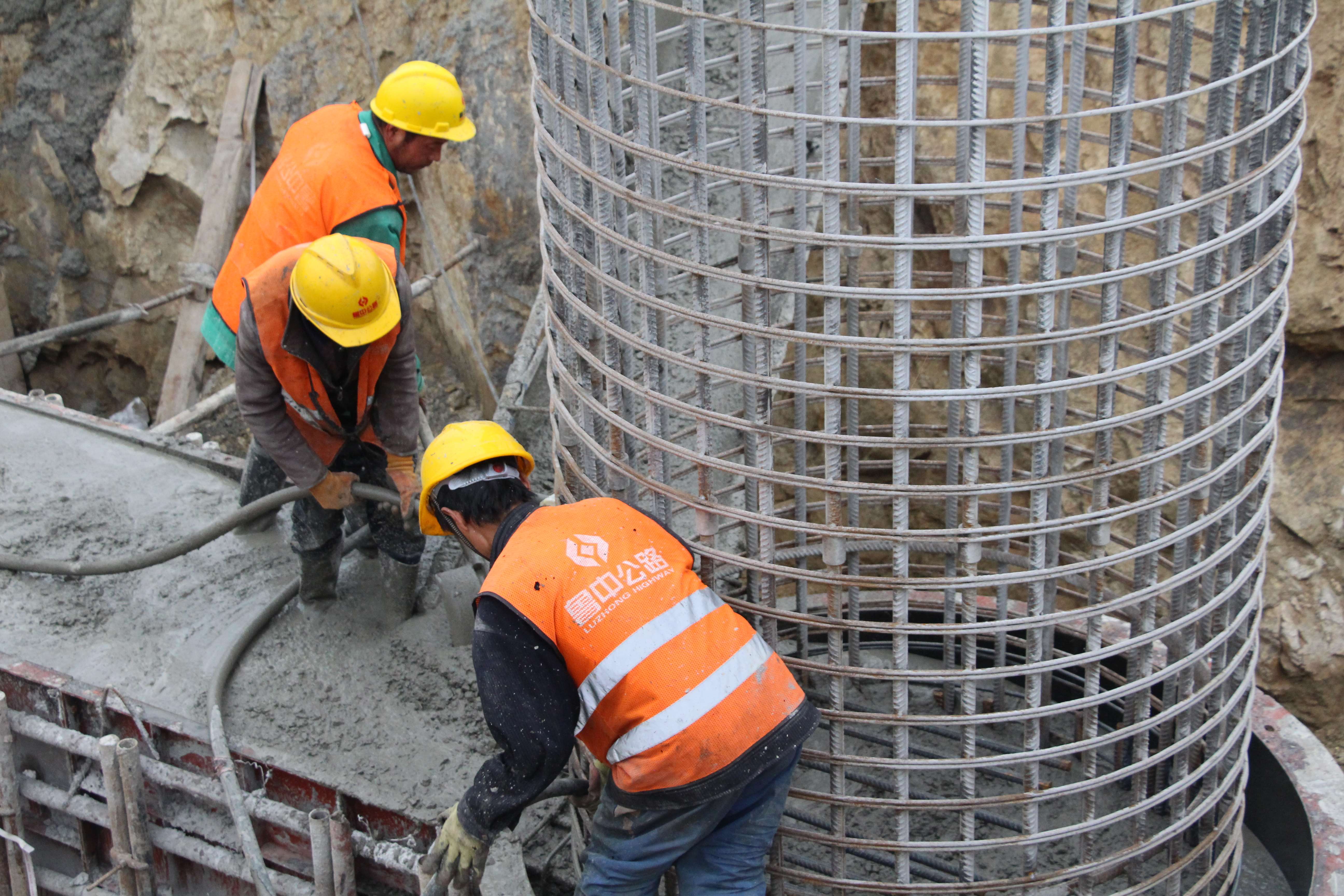 興隆莊特大橋施工現(xiàn)場(chǎng),現(xiàn)場(chǎng)負(fù)責(zé)人朱恒正在指揮機(jī)械、工人進(jìn)行墩柱及系梁澆筑施工。
