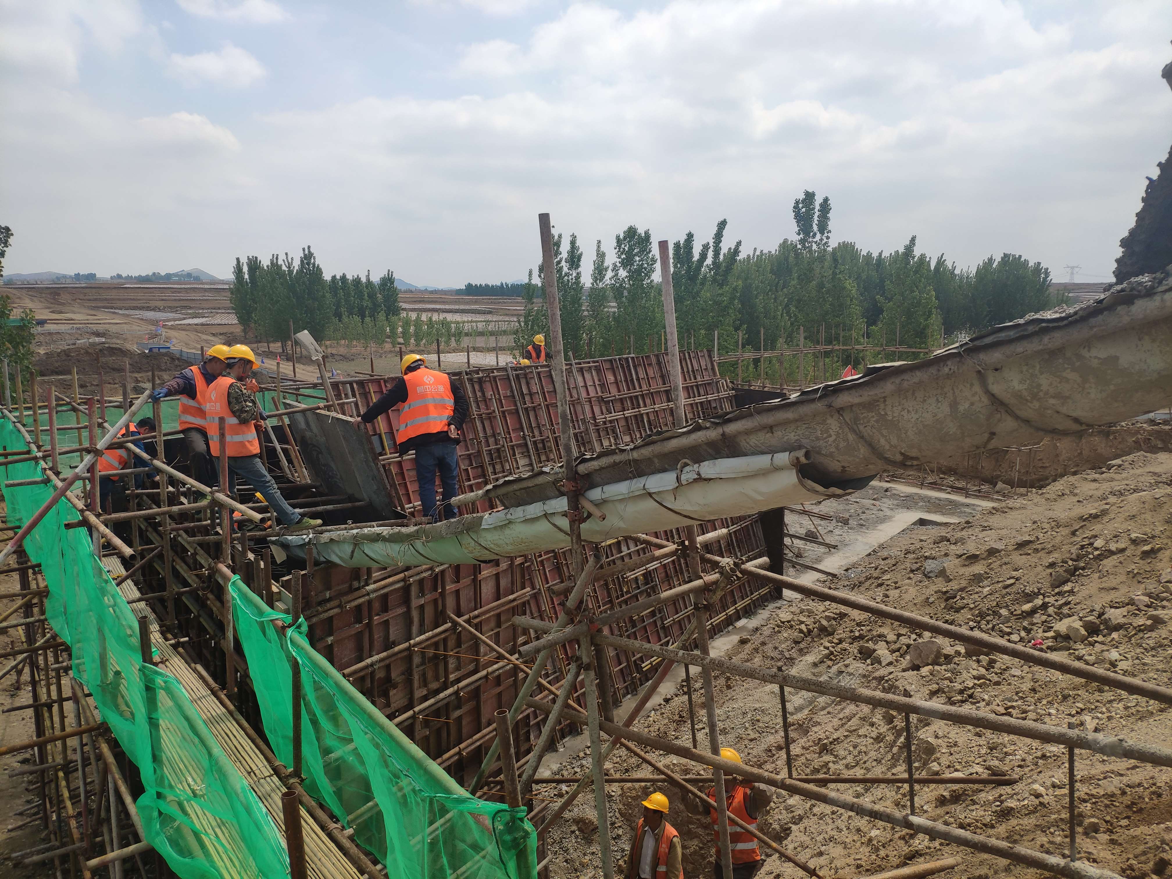 K48+447.3分離立交,橋涵負(fù)責(zé)人張靖山正在現(xiàn)場(chǎng)指揮施工。