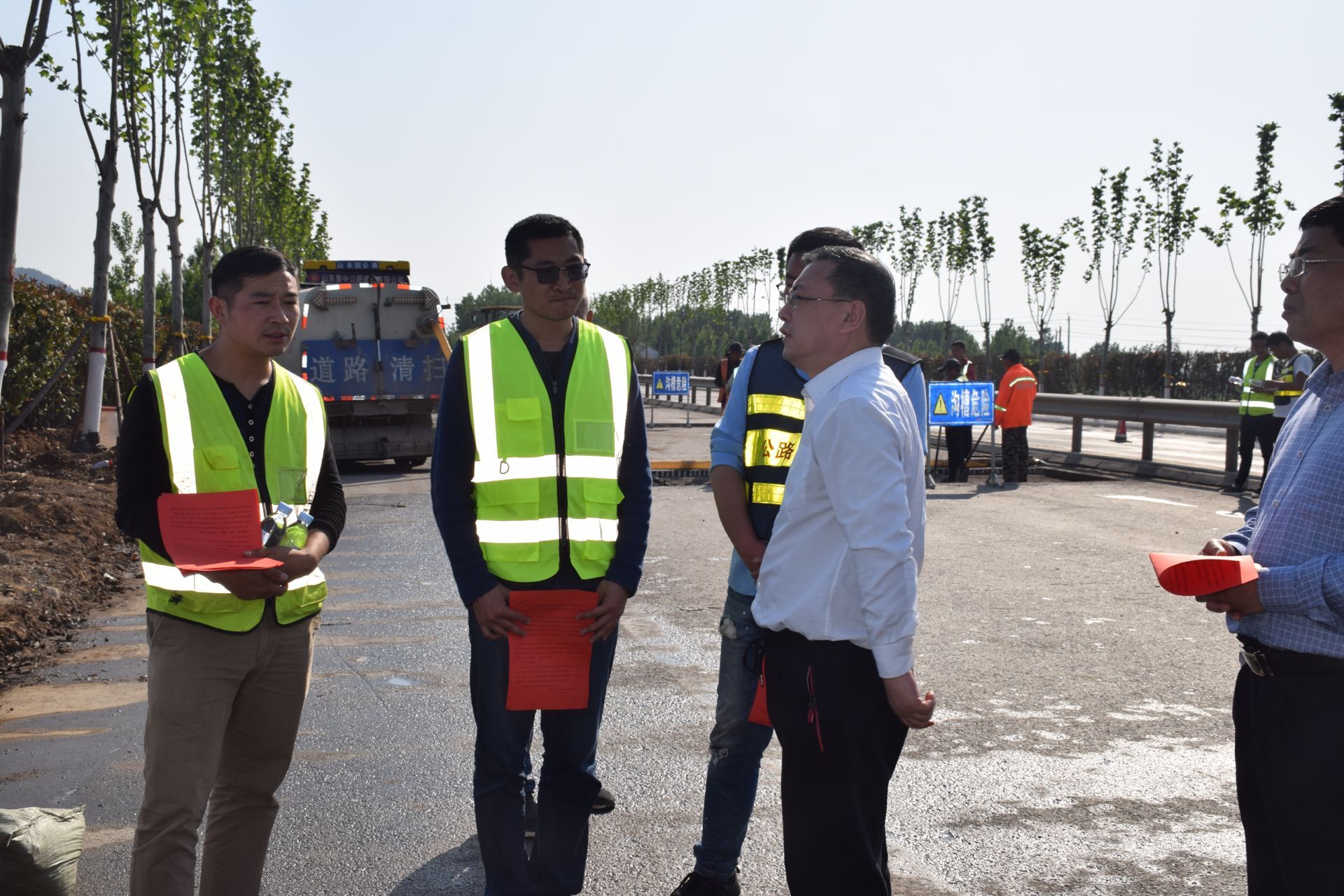 五一節(jié),棗莊市公路局領導視察G206工程進展情況