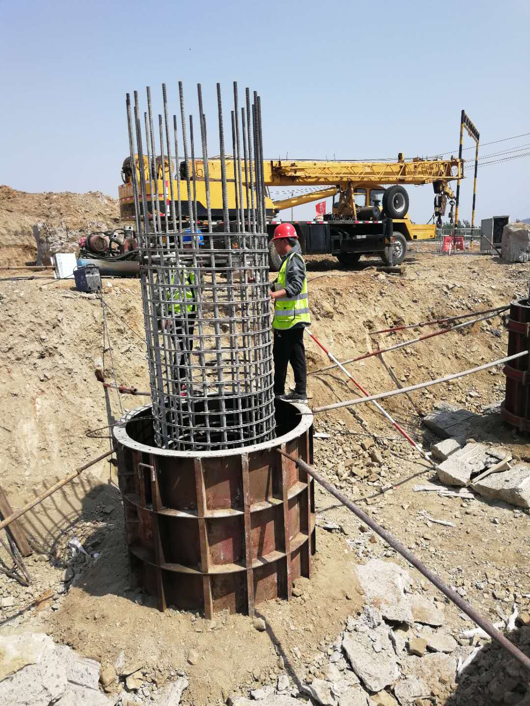在對(duì)K36+448.5霄嵐水庫(kù)的橋梁上施工時(shí)讓他感到了非常棘手。首先是設(shè)計(jì)樁頂比原地面低很多,尤其是3#樁基,吊筋過(guò)長(zhǎng),造成鋼筋籠定位困難,只能一遍一遍調(diào)整,直到鋼筋籠中心不偏位為止。其次是地質(zhì)情況,巖層頂部為斜面,護(hù)筒過(guò)短無(wú)法全部入巖,造成護(hù)筒一側(cè)塌孔,護(hù)筒過(guò)長(zhǎng)外露過(guò)多,且灌注完成后難拔出,多次嘗試后才選定護(hù)筒長(zhǎng)度。