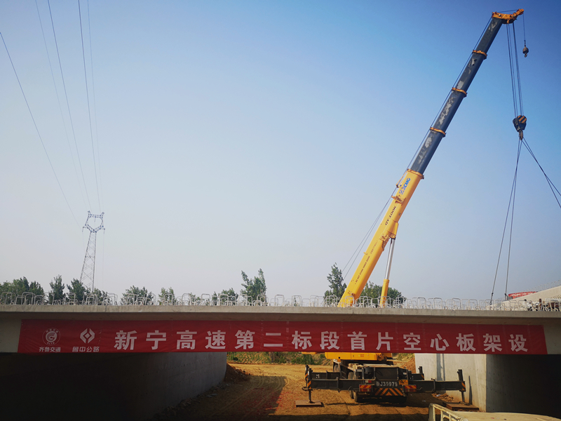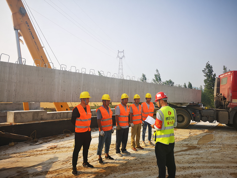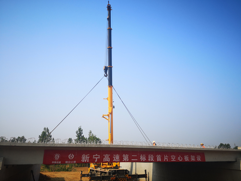 2019年6月17日至2019年6月18日,新寧項目部于K54+407小橋工程成功完成首片先張空心板架設(shè)安裝,同時也是新寧項目全線首片空心板架設(shè)施工。