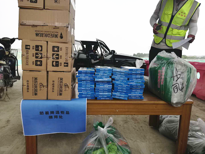 兵馬未動,糧草先行。為了保證工人們在高溫天氣下能夠安全、放心、舒心工作,項目部想員工之所想,急員工之所急,統(tǒng)籌部署,妥善安排,開展了一系列送清涼活動,為奮戰(zhàn)在一線的工人們送去了絲絲涼意,獻(xiàn)上了一份誠摯的關(guān)懷。