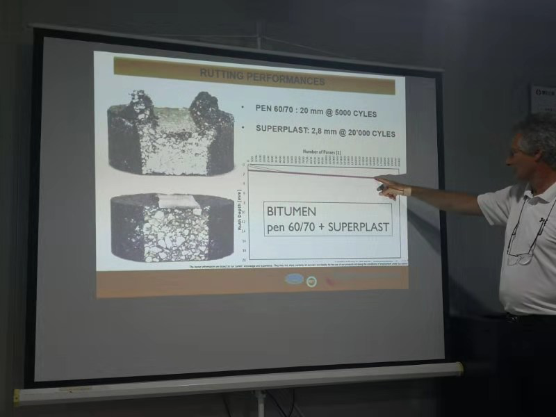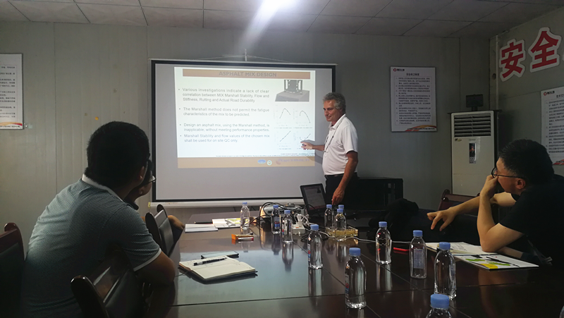 2019年7月15日意大利公路工程技術(shù)專家菲利普先生與市交通事業(yè)服務(wù)中心養(yǎng)護(hù)科,針對目前淄博重載交通、長縱坡和高溫季節(jié)等極易出現(xiàn)車轍問題,在山東魯中公路市政工程分公司進(jìn)行調(diào)研與工藝學(xué)術(shù)探討。