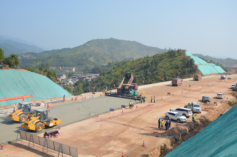 在經(jīng)過緊張而有序的準備之后,9月28日上午8:00整,底基層試驗段正式開始施工?,F(xiàn)場攤鋪機、壓路機等施工機械緊密配合,施工人員嚴格按照工藝要求進行施工,做到施工標準化、規(guī)范化,并及時總結數(shù)據(jù)。本次級配碎石底基層試驗段位于左幅K56+660-K57+060段,全長400米,經(jīng)過近6個小時不間斷作業(yè),我部順利完成該試驗段施工任務。