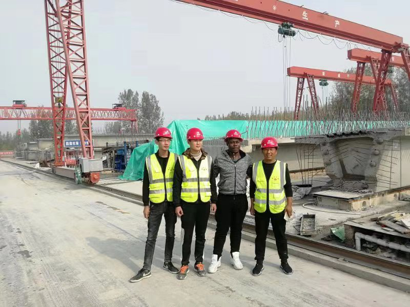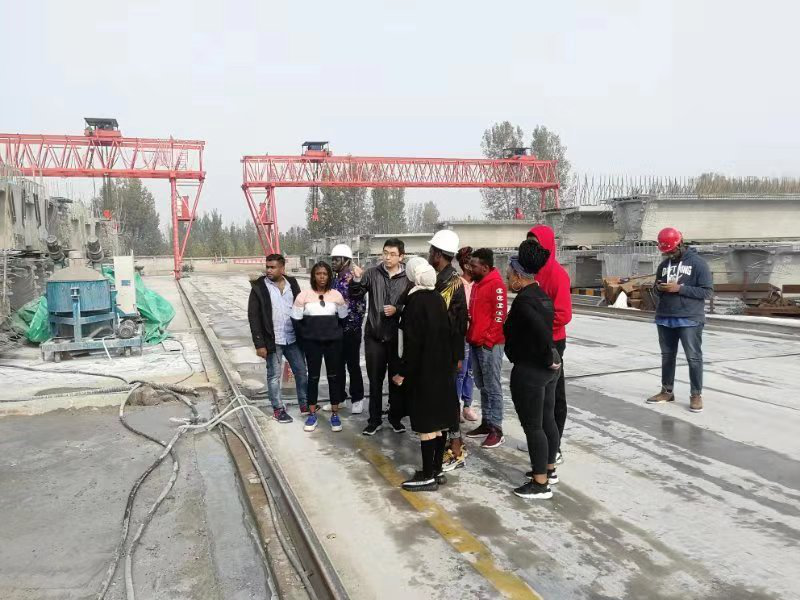 交院隨行老師向外國留學(xué)生講解了箱梁張拉、壓漿情況