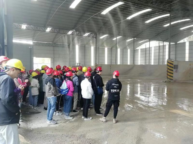 學(xué)員在項(xiàng)目部員工的帶領(lǐng)下,仔細(xì)參觀了拌合站料倉噴淋降塵系統(tǒng)、拌合站水洗系統(tǒng),并就砂石料含水量、施工配合比等問題提出疑問,與現(xiàn)場員工進(jìn)行了深入交流。