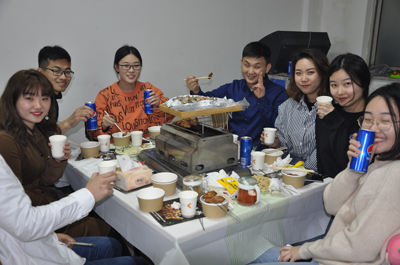 一下午的活動(dòng)充實(shí)又趣味十足。下午6:00,負(fù)責(zé)自助燒烤的同事們?cè)缫训群疃鄷r(shí),他們?yōu)閰⒓勇?lián)誼會(huì)的青年人們送上了各式精美烤串,玩累了鬧累了,推杯論盞,開(kāi)啟了彼此幸福的晚餐時(shí)光。擼的是串,論的是緣,20200104這美好的日子里,突如其來(lái)的愛(ài)情在這些年輕人心中蔓延生長(zhǎng)。