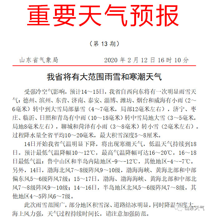 山東省氣象局發(fā)布重要天氣預(yù)報(bào)
