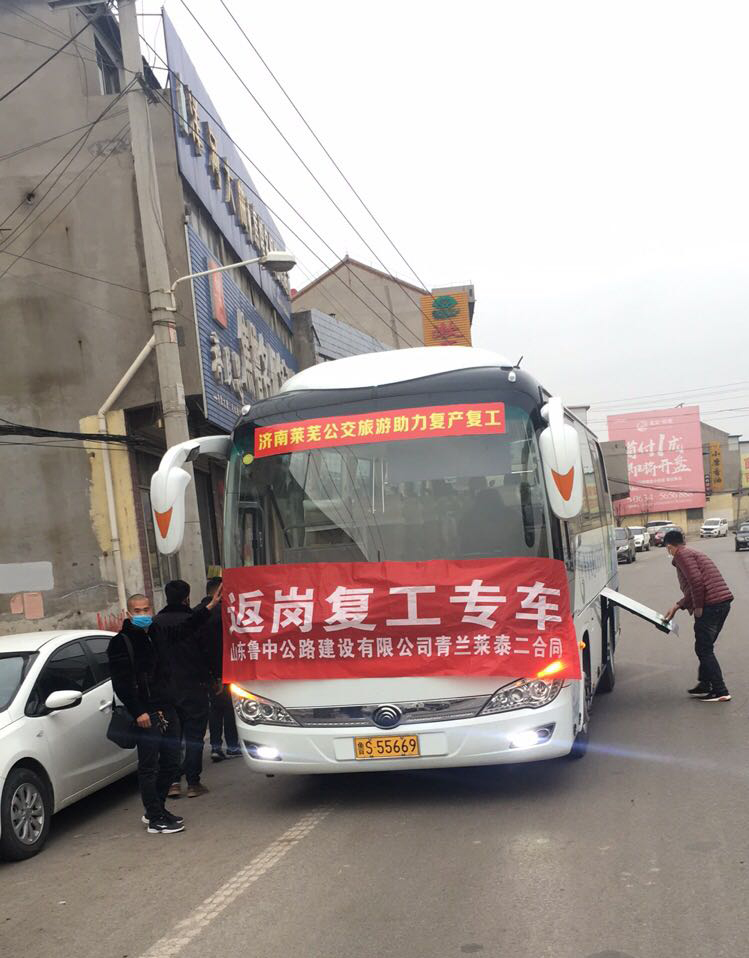 2020年2月27日,青蘭項(xiàng)目部首趟由萊蕪區(qū)發(fā)往河北保定的跨省返崗復(fù)工包車,經(jīng)過12小時、1000多公里的長途跋涉,順利返回,在青蘭萊泰七個標(biāo)段中,率先拉開了“點(diǎn)對點(diǎn)”包車返崗復(fù)工的序幕。