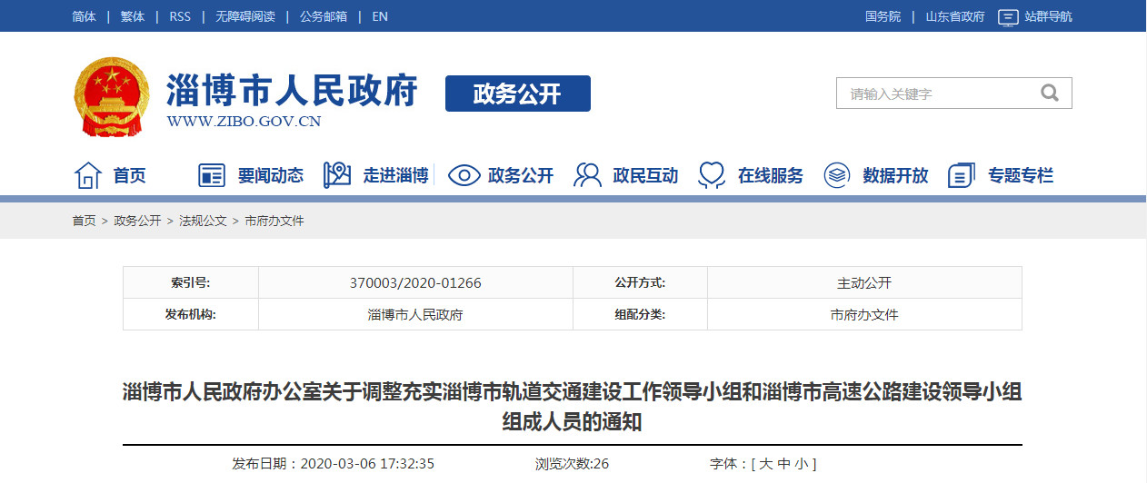 淄博市公布軌道交通和高速公路兩個建設(shè)領(lǐng)導(dǎo)小組成員