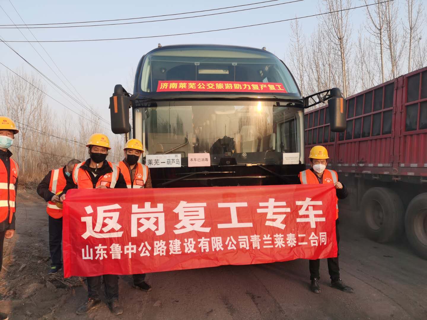2020年2月27日下午18:00,青蘭項(xiàng)目部首趟由萊蕪區(qū)發(fā)往河北保定的跨省返崗復(fù)工包車,經(jīng)過12小時(shí)、1000多公里的長途跋涉,順利返回,在青蘭萊泰七個(gè)標(biāo)段中,率先拉開了“點(diǎn)對點(diǎn)”包車返崗復(fù)工的序幕。