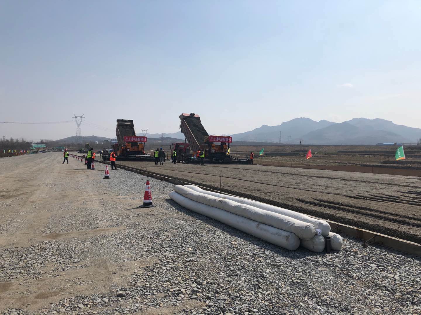 2020年3月9日,路基試驗(yàn)段交驗(yàn)。3月10日,路面基層開工,比年初制定的計(jì)劃整整提前了五天。