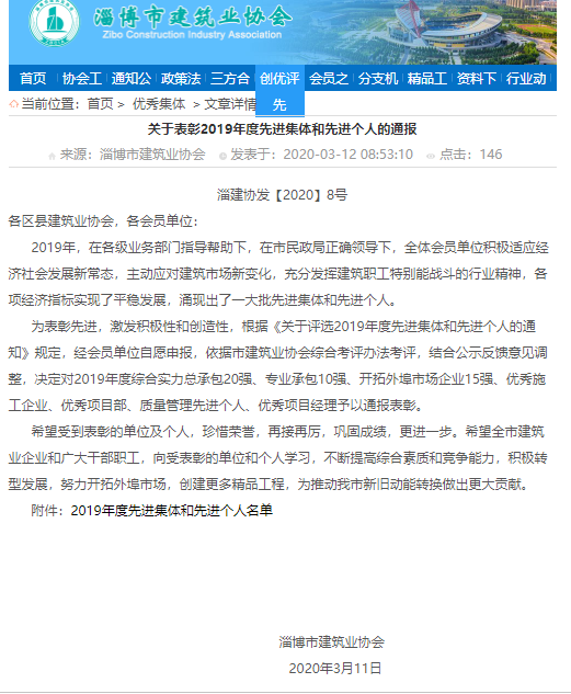 另外,公司有2人被山東省市政行業(yè)協(xié)會評為“2019年度優(yōu)秀市政工程項目經(jīng)理”,5人被淄博市市政環(huán)衛(wèi)協(xié)會評為“2019年度淄博市市政行業(yè)優(yōu)秀項目經(jīng)理”,4人被淄博市市政環(huán)衛(wèi)協(xié)會評為“2019年度淄博市市政工程質(zhì)量管理先進(jìn)個人”。