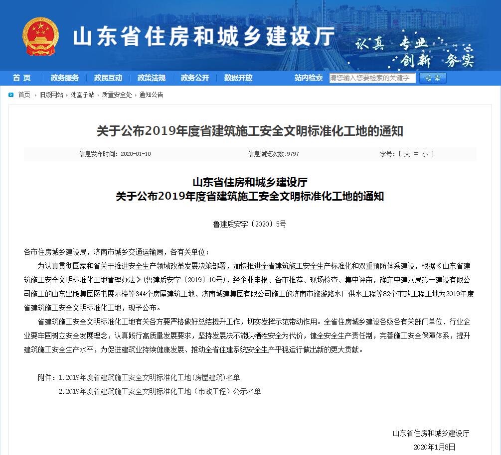 在安全管理方面,我公司承建的柳園路跨孝婦河橋改造工程經(jīng)過省級專家實地檢查驗收,被山東省住建廳評為“2019年度省建筑施工安全文明標(biāo)準(zhǔn)化工地”。