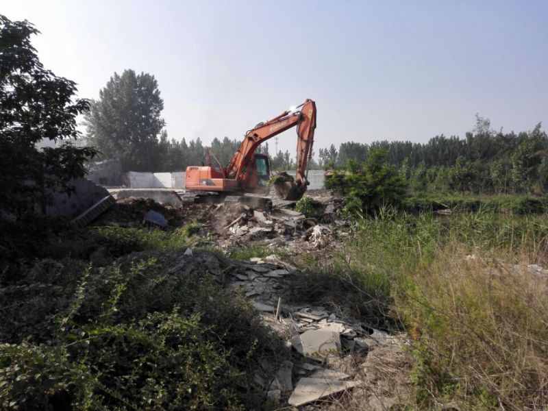 今年五月份,再次來到孝婦河畔,呈現(xiàn)在眼前的景象卻令人始料未及——由于規(guī)劃建設(shè)濕地公園,該段孝婦河東岸的房屋盡數(shù)拆遷,到處都是殘垣斷壁,像地震后的一片廢墟。而我們項目部選址恰恰就在這個位置。