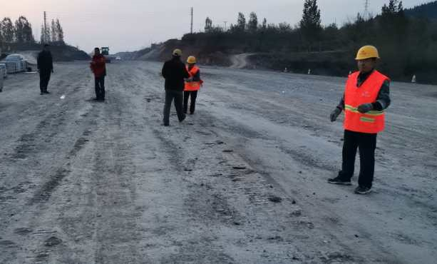 各生產分部在確保施工生產和運輸車輛正常行駛的同時,主動放棄休息時間,加班加點,積極調配各類作業(yè)機械和人員,連續(xù)工作30多個小時,使施工便道以最快的時間達到了通車條件,各種指示、標牌也在第一時間布置到位。調研匯報地點處,屬于路面分部施工段落。為確保匯報場地不出任何紕漏,路面負責人親自督導作業(yè),并安排專人值守,發(fā)現問題第一時間解決處理,確保了現場萬無一失。