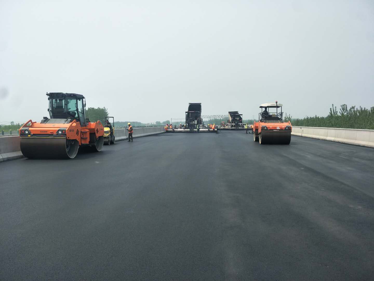 2020年4月20日由山東魯中公路建設(shè)有限公司承建的京滬高速萊蕪至臨沂(魯蘇界)段改擴建工程篙旺溝大橋橋面鋪裝(瀝青砂)順利完成鋪筑,篙旺溝大橋中心樁號K709+040.128,橋長240米,經(jīng)過試驗檢測,各項指標(biāo)均符合設(shè)計及規(guī)范要求。此次橋面鋪裝(瀝青砂)的順利鋪筑,為后續(xù)橋面鋪裝(瀝青砂)施工積累了寶貴經(jīng)驗。