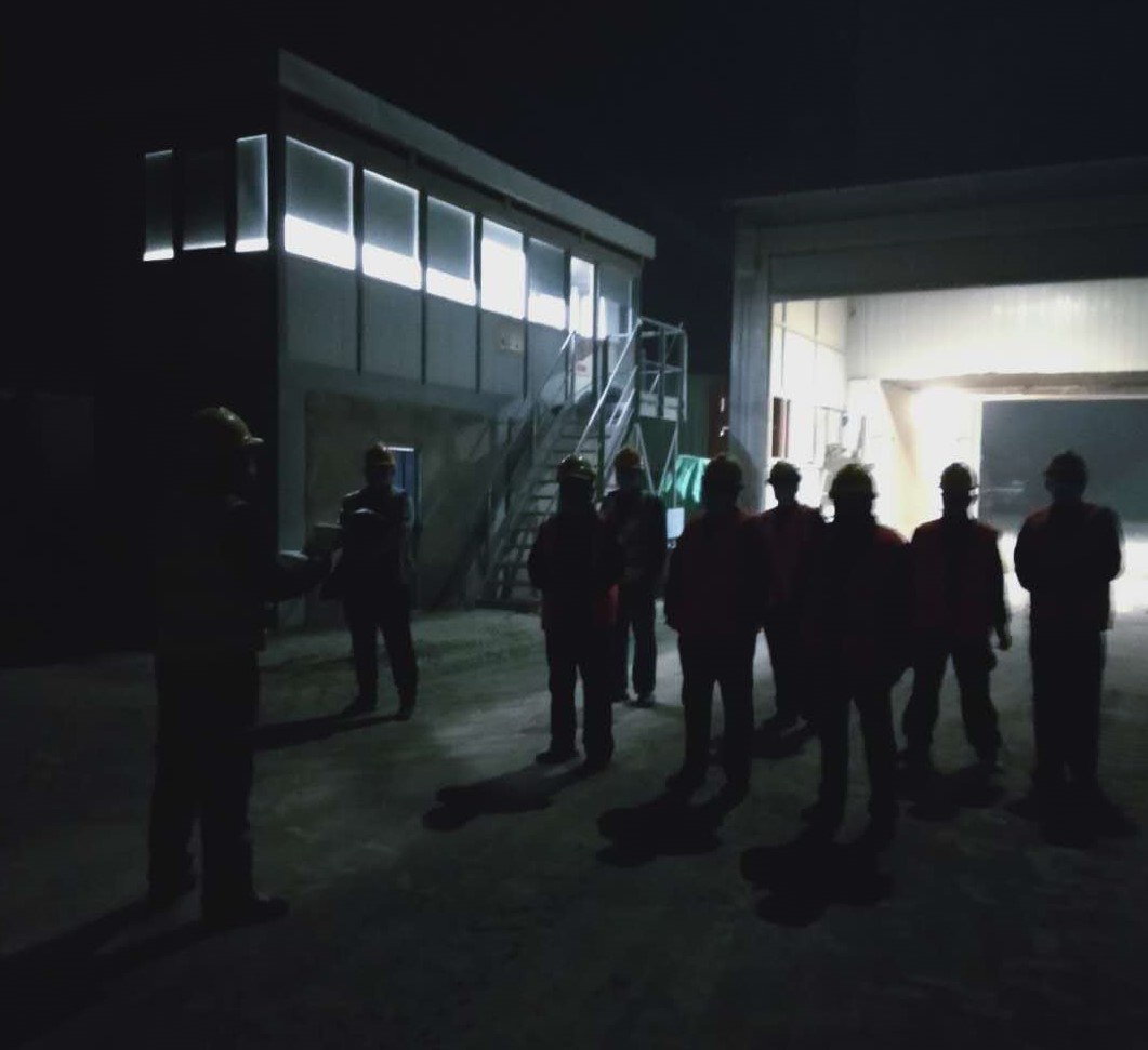 安全生產(chǎn)是永恒的主體,凌晨4:00瀝青拌合站操作工王志成開(kāi)機(jī)前對(duì)工人做安全技術(shù)交底。
