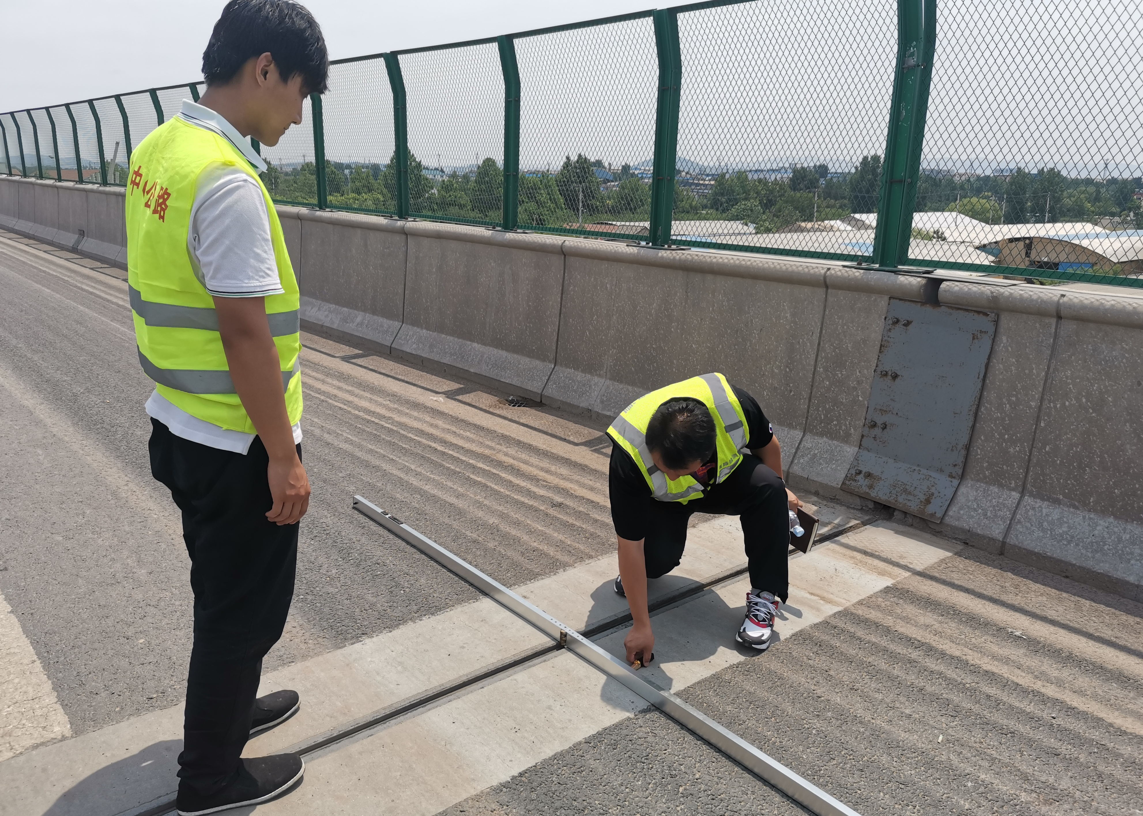 專家組人員分為兩組在上午十一點到達我第二標(biāo)段進行質(zhì)量檢驗。路面專家組人員對K93+200-K94+200段進行了外觀質(zhì)量、路面彎沉、路面車轍、路面平整度、路面抗滑等項目的檢測。橋梁專家組對南羅鐵路分離立交、張博路分離立交的外觀質(zhì)量、橋梁伸縮縫與橋面鋪裝高差、橋面鋪裝平整度、橡膠支座受力情況進行的檢測。