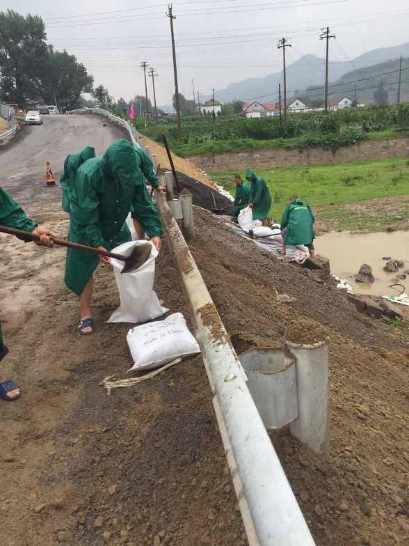 連日來,全國多個地區(qū)接連遭遇暴雨襲擊。7月18日,路面工程分公司微信工作群先后轉(zhuǎn)發(fā)了由山東省人民政府總值班室和山東省農(nóng)業(yè)廳發(fā)布的《關(guān)于做好強降雨應(yīng)對工作的通知》, 19日下午17:35分,分公司經(jīng)理姚慶敏再次轉(zhuǎn)發(fā)了一條由淄博市氣象臺于19日17時發(fā)布的暴雨藍(lán)色預(yù)警信息,提醒大家提前預(yù)防、早做安排,注意防汛排澇。19日下午18:00,分公司經(jīng)理姚慶敏召開緊急會議,即刻成立“博沂路防汛排澇應(yīng)急小組”,由姚經(jīng)理任組長,負(fù)責(zé)防汛排澇工作的總指揮。副經(jīng)理胡立峰、尚興武兩人一組負(fù)責(zé)北博山中橋便道的防汛工作;副經(jīng)理張文濤、王家濤兩人一組,帶領(lǐng)機(jī)械、人員堅守鄭家莊大橋施工便道。他們的任務(wù)是一旦汛情嚴(yán)重,立即啟動預(yù)案,挖斷便道泄洪、設(shè)立圍擋、懸掛警示標(biāo)識;勸誡社會車輛、人員繞行,以保證過往行人及兩旁居民的人身財產(chǎn)安全 。