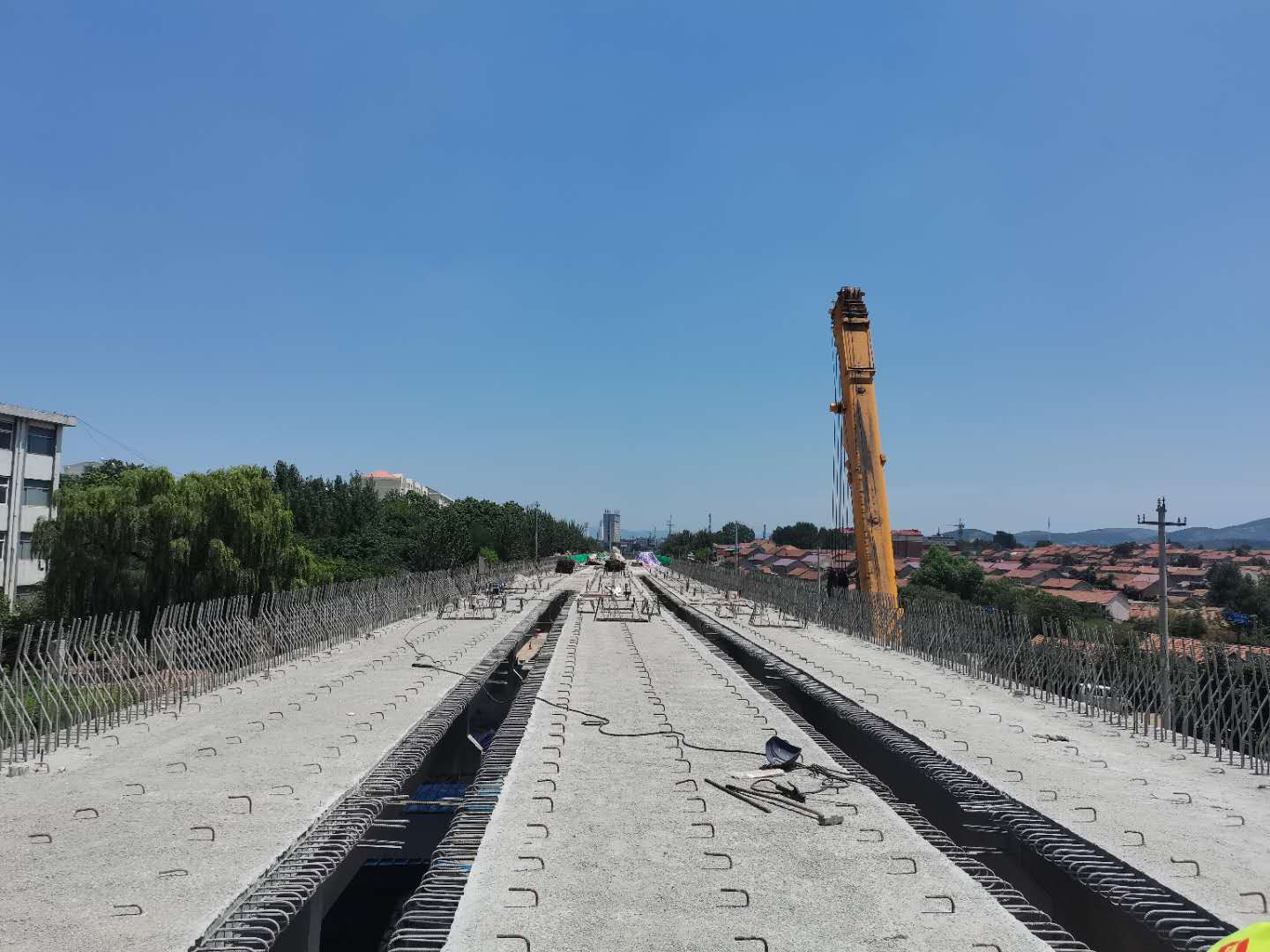 G341膠海線南崔路立交橋30m箱梁吊裝完成