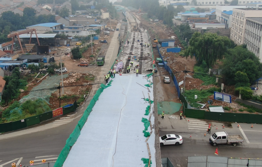 南崔路立交橋第一聯(lián)橋面鋪裝澆筑完成